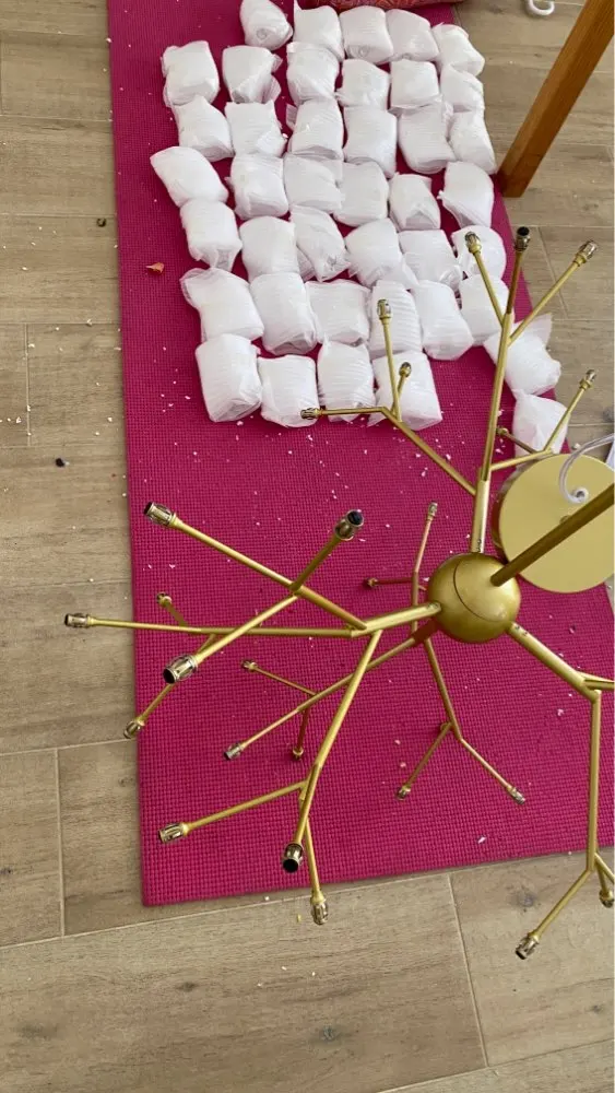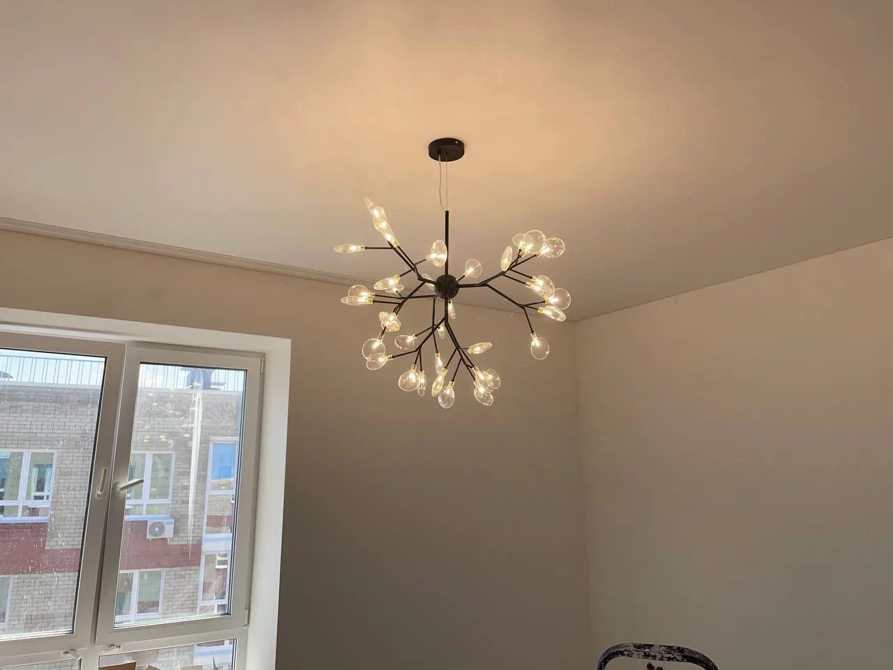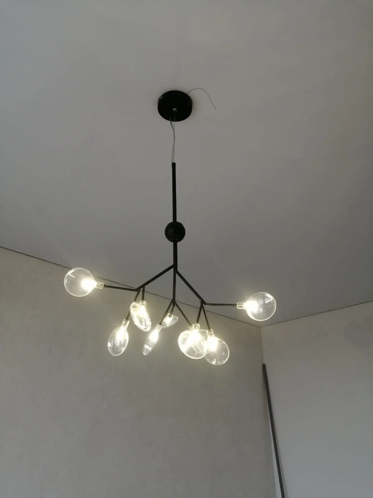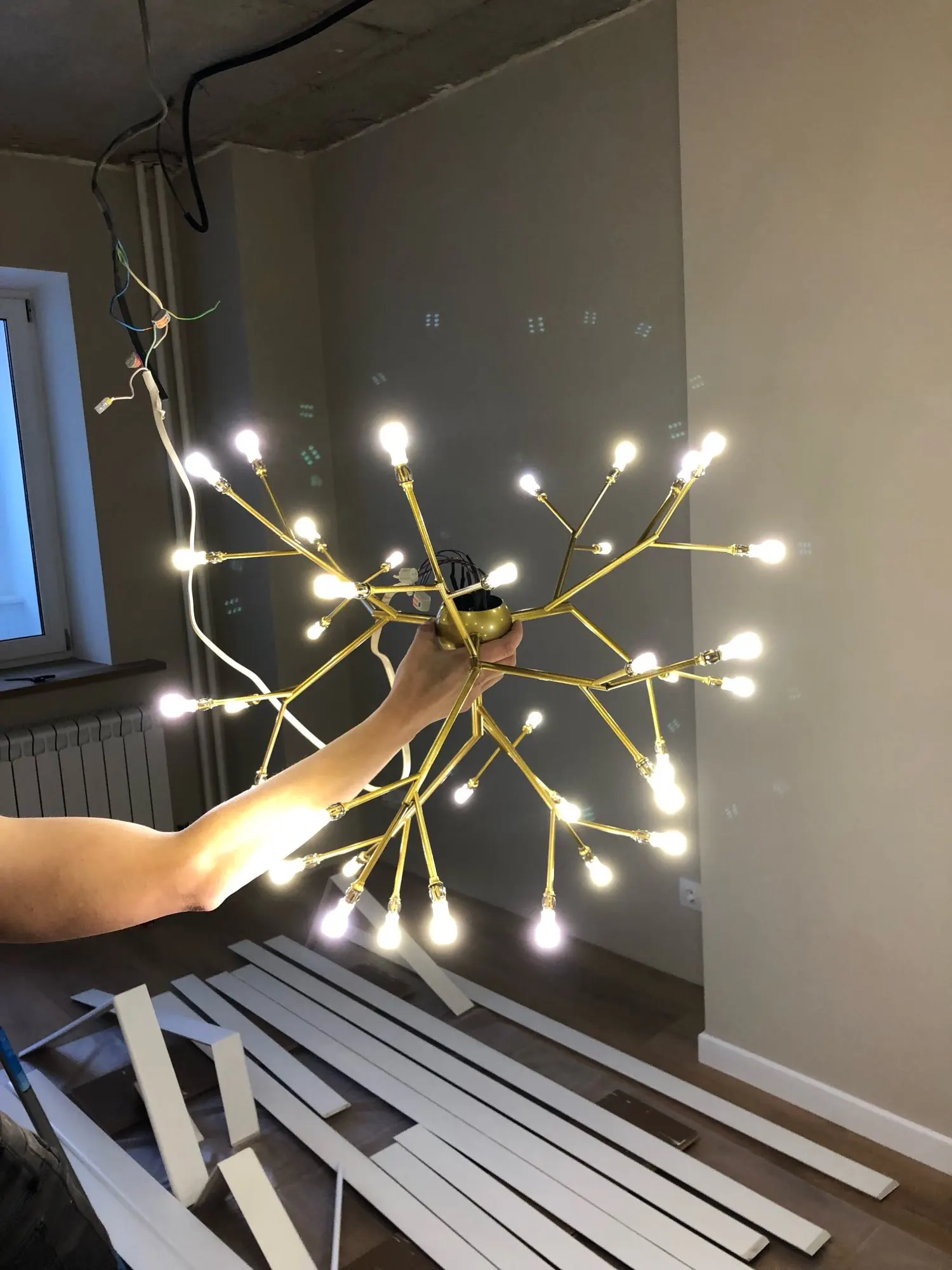 Люстра красивая. Инструкции не было, собирали на свой страх и риск. Пришло все целое, упаковано хорошо. Плафоны пластиковые. Почему-то надеялась, что будут стеклянные