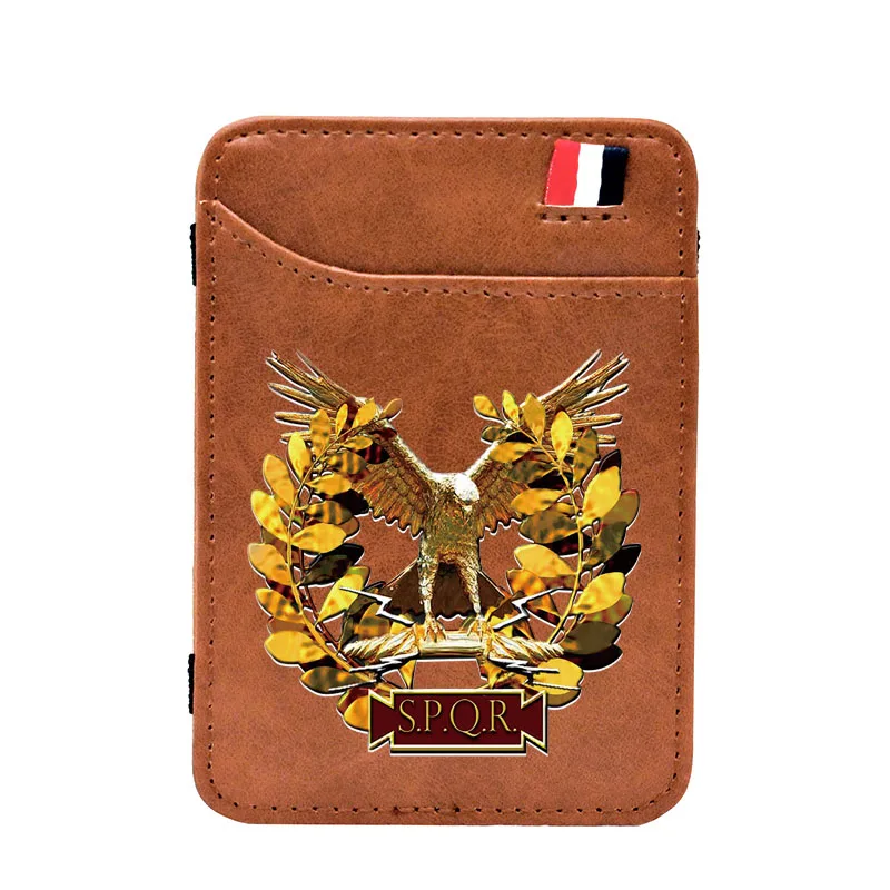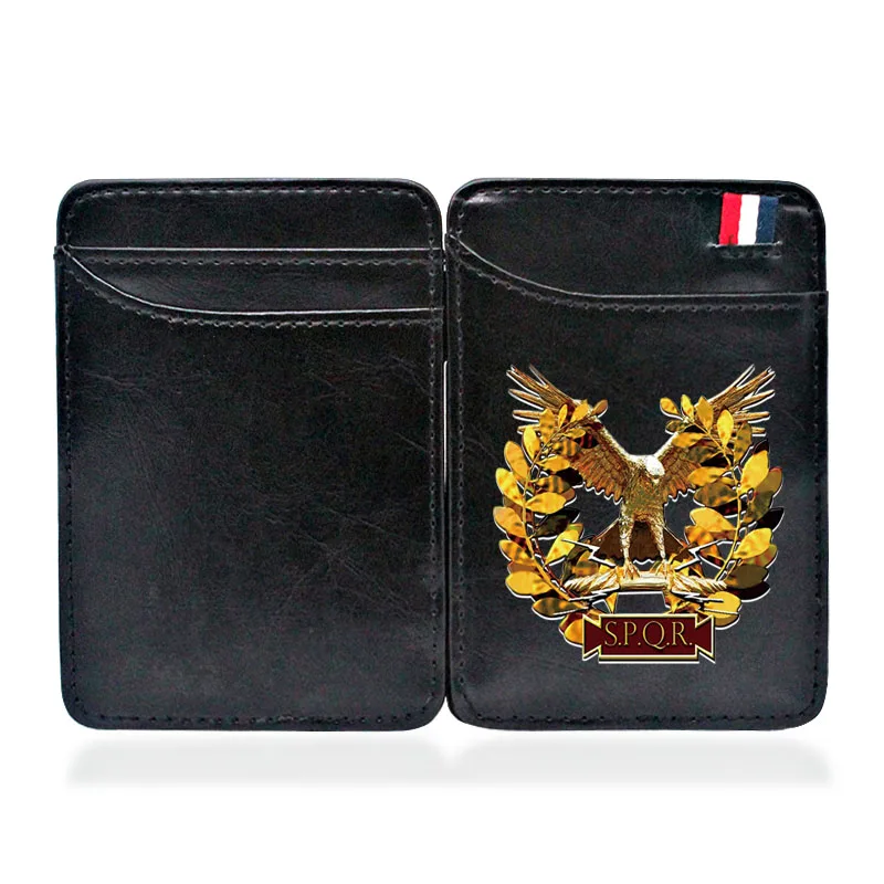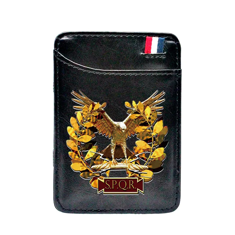 Черный кожаный кошелек с принтом символов Римской империи, классический мужской и женский кошелек с зажимом для денег, держатель для карт