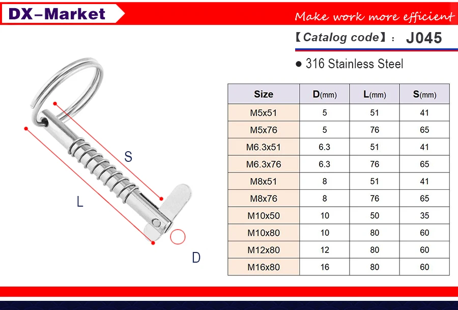 SS316 M12 быстроразъемные штифты, 316 Нержавеющая Сталь M5 M16 пружинный замок морской безопасности штифт, J045