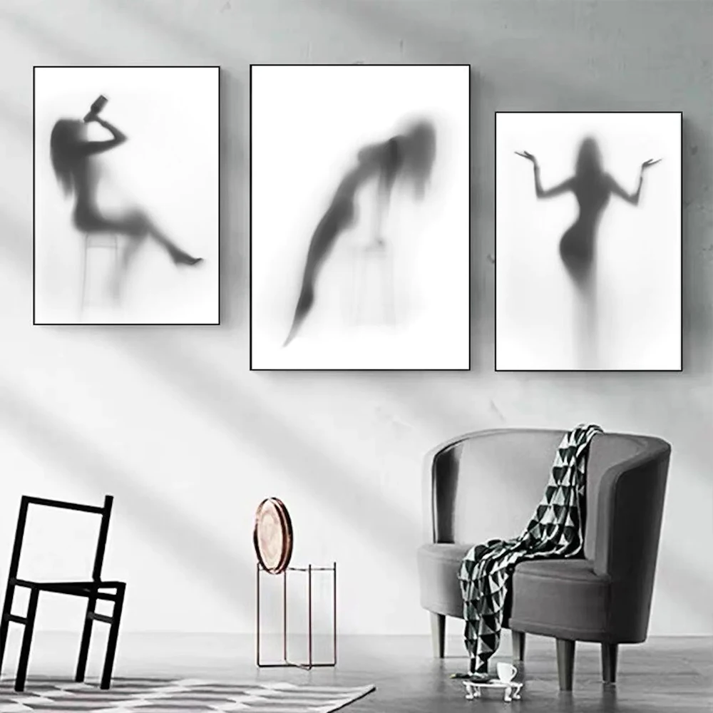 Черно-белая абстрактная женщина настенное Искусство Холст пол поза душ Голая девушка темная тень скандинавский плакат печать спальня домашний декор