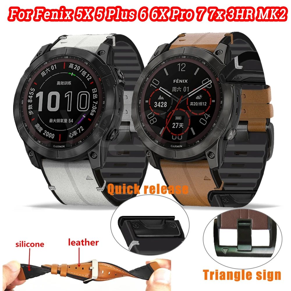Ремешок для смарт-часов Garmin Fenix 6 6X Pro 5X 5 Plus 3HR Fenix 7 7X, кожаный силиконовый браслет для быстрой установки, 22 26 мм