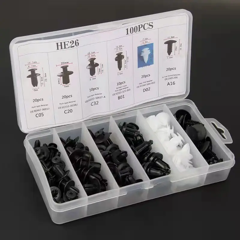 Универсальные зажимы для автомобильного бампера, 6 размеров, 100 шт.