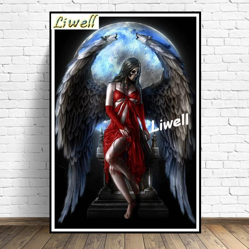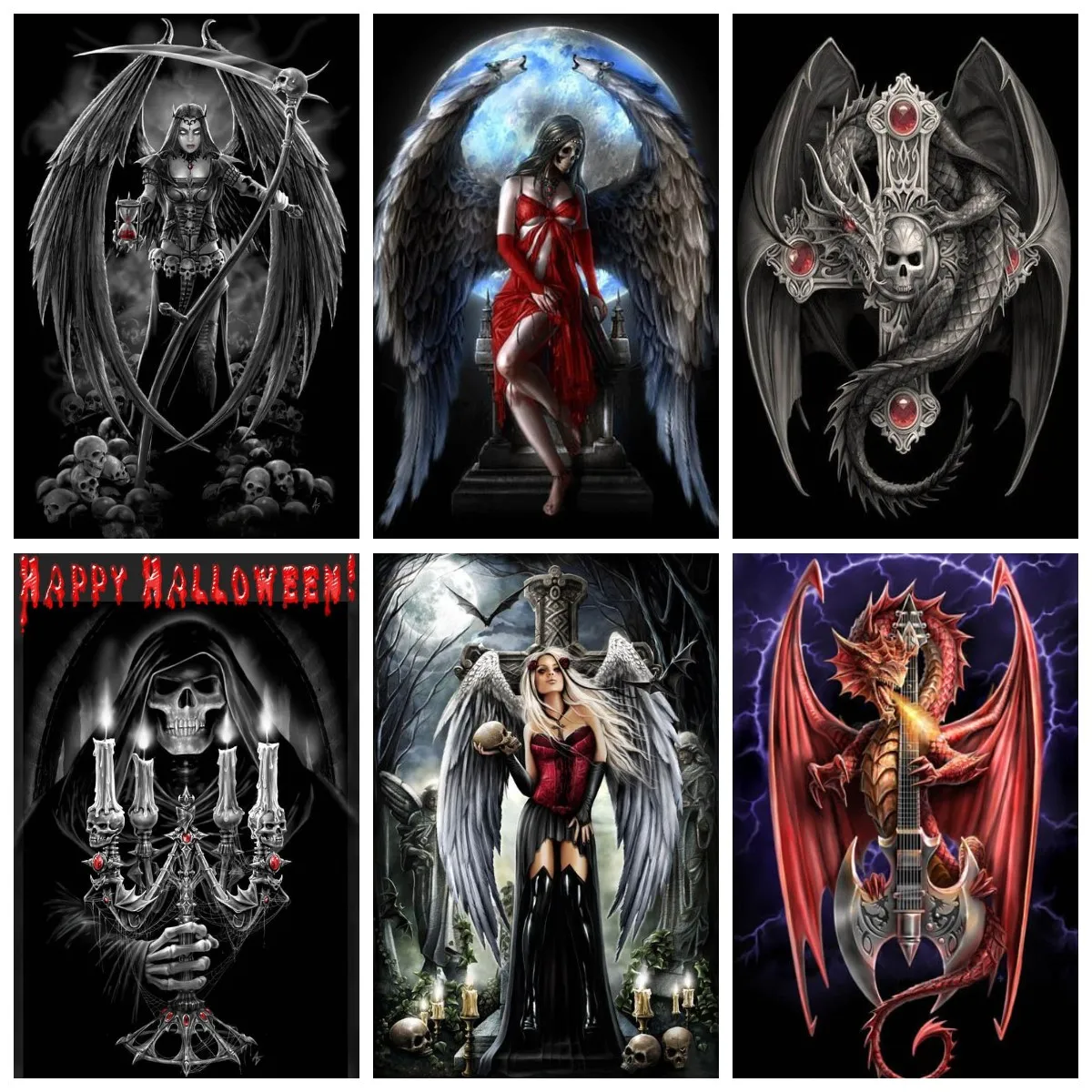 5d полная Алмазная картина с черепом, искусство и ангел стразы, моз...