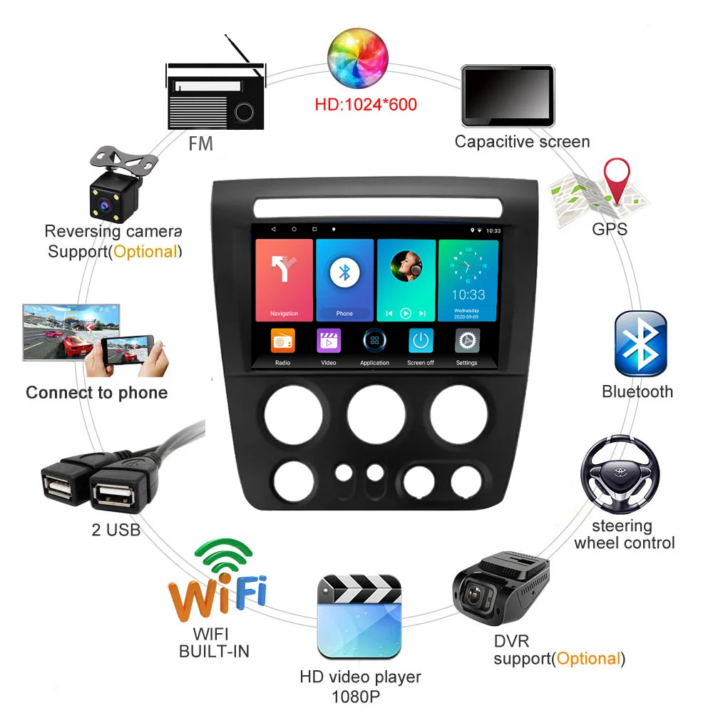9 дюймов 2 Din Android автомобильное радио для Hummer H3 2005-2010 WIFI GPS навигация FM Bluetooth HD видео плеер головное устройство