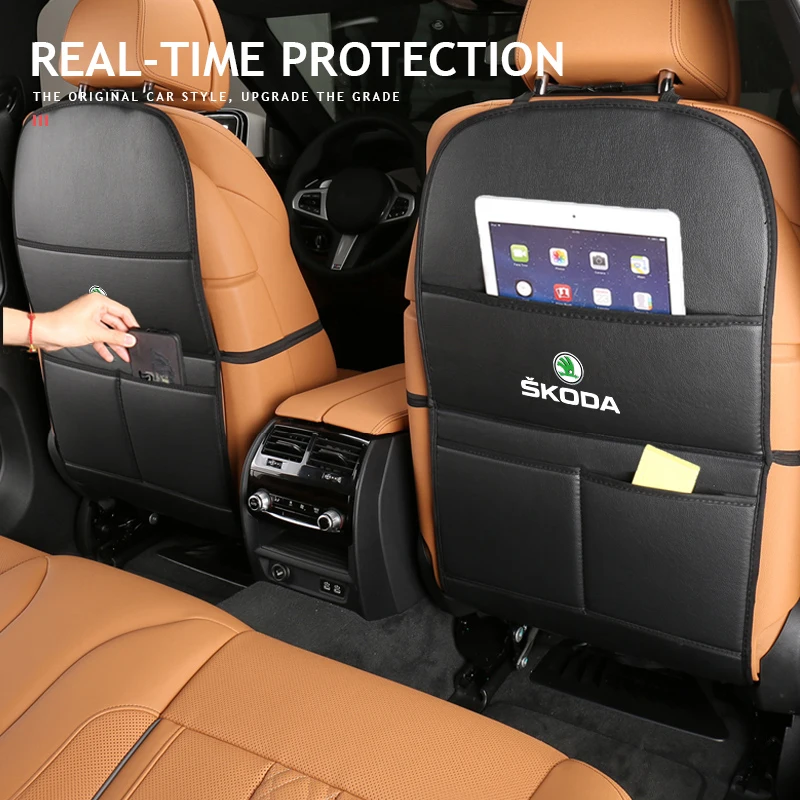Автомобильная подушка с логотипом против царапин, Защитная крышка для сиденья, сумка для хранения для Skoda Octavia Superb Kodiaq Rapid Fabia Kamiq Karoq Derivati