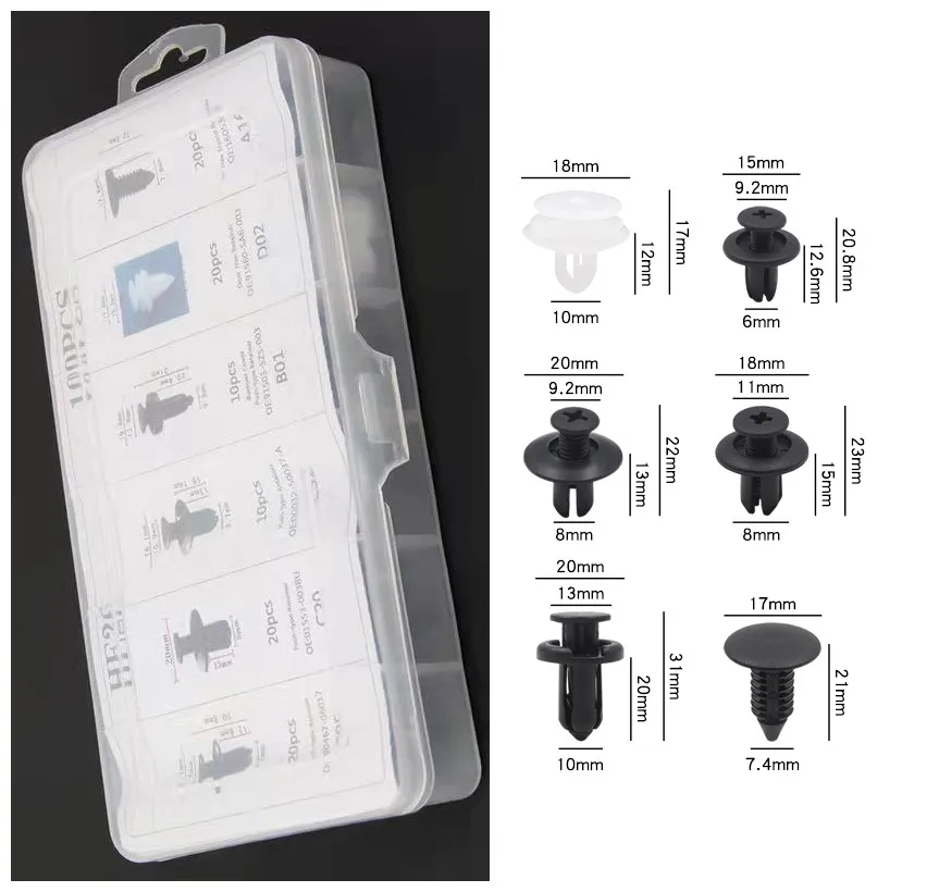 Универсальные зажимы для автомобильного бампера, 6 размеров, 100 шт.