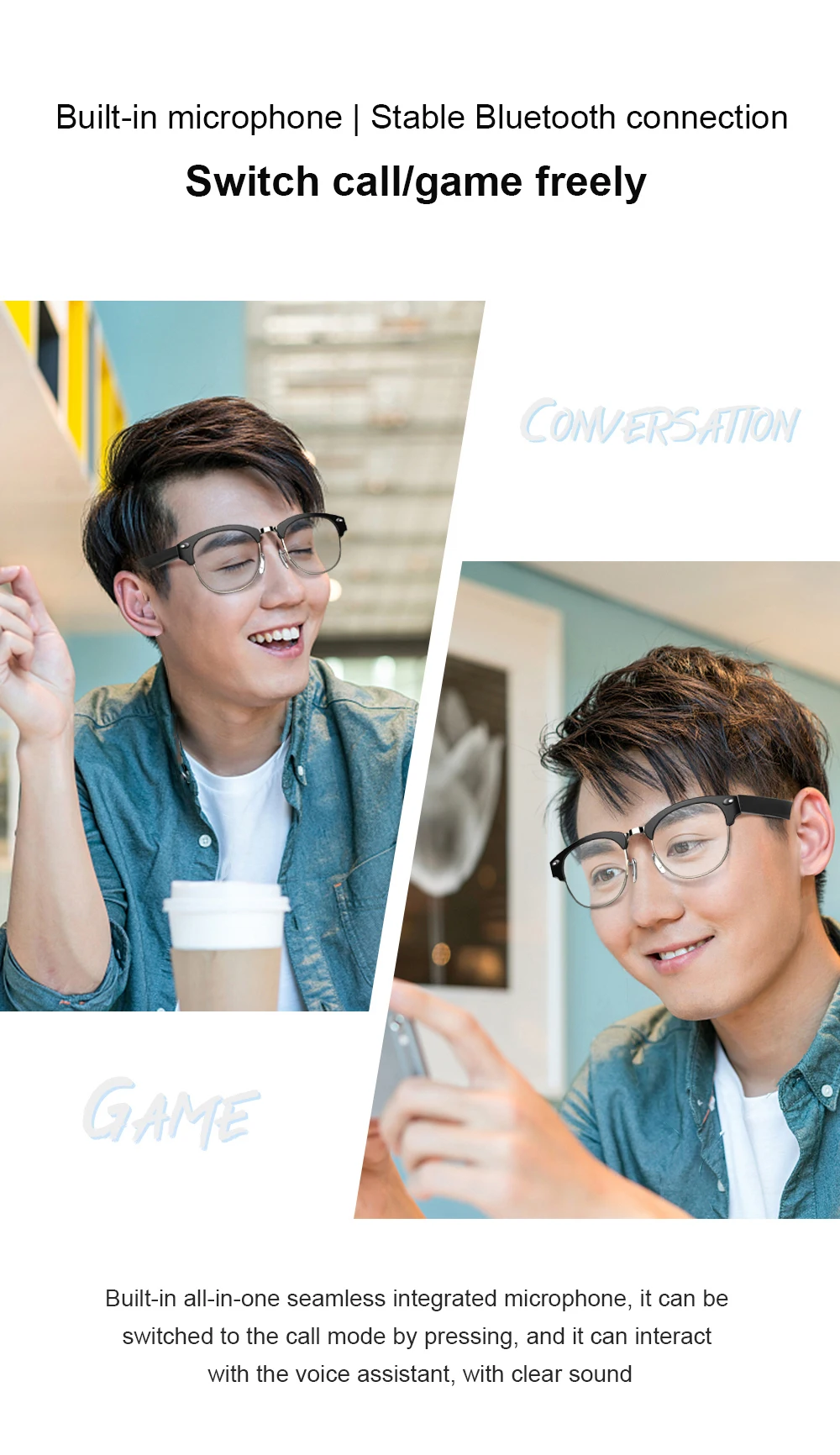 Умные беспроводные наушники E20, Bluetooth-гарнитура, спортивные наушники с защитой от голубого света, Built-in динамик без костной проводимости