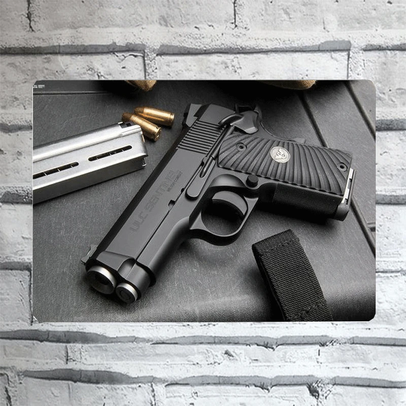 Металлический жестяной плакат с револьвером, украшение для дома, на...
