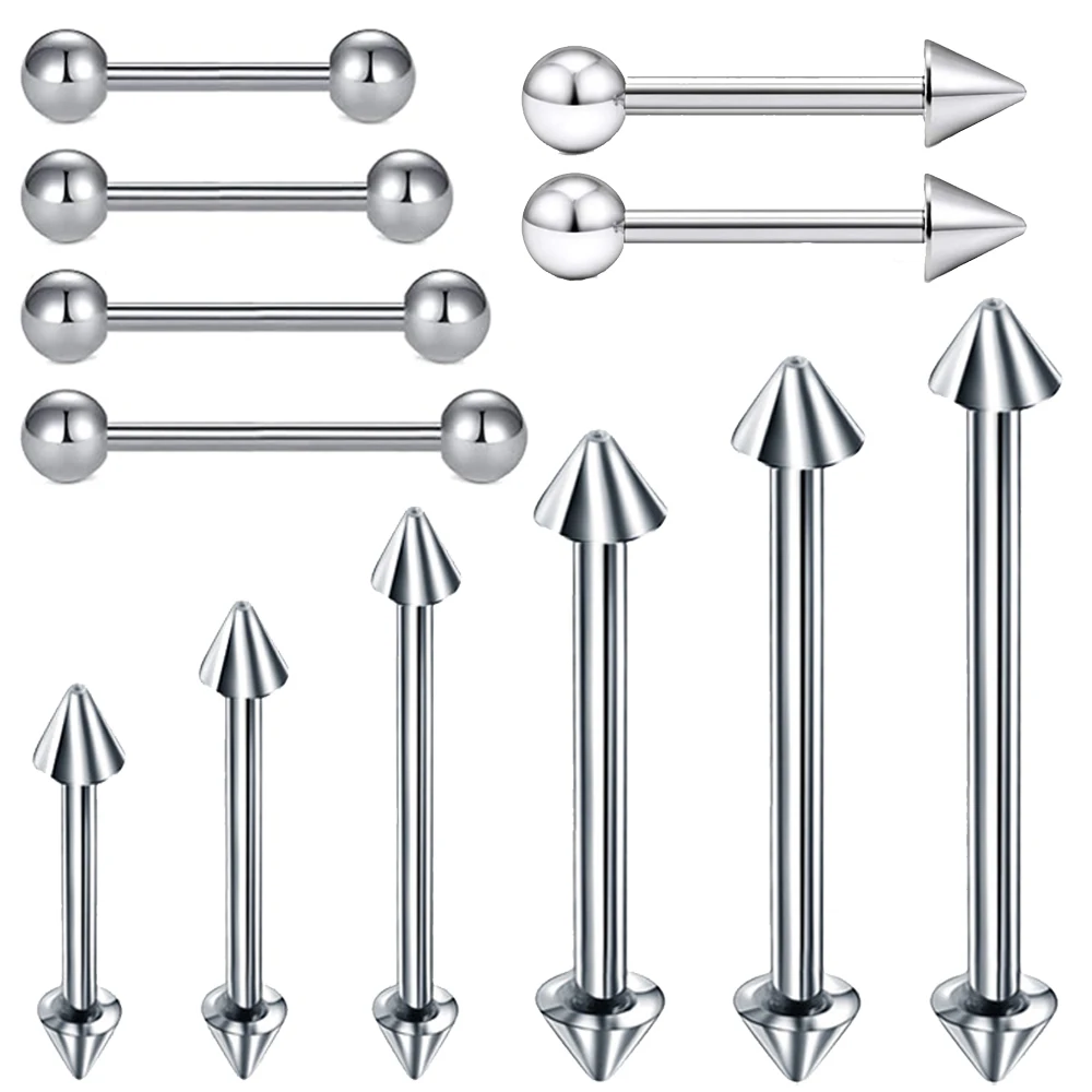 Серьги-гвоздики из нержавеющей стали для пирсинга, ювелирные изделия в стиле индастриал для языка, соска, тела, для мужчин и женщин, серьги-гвоздики для хрящевой ткани, 2 шт.