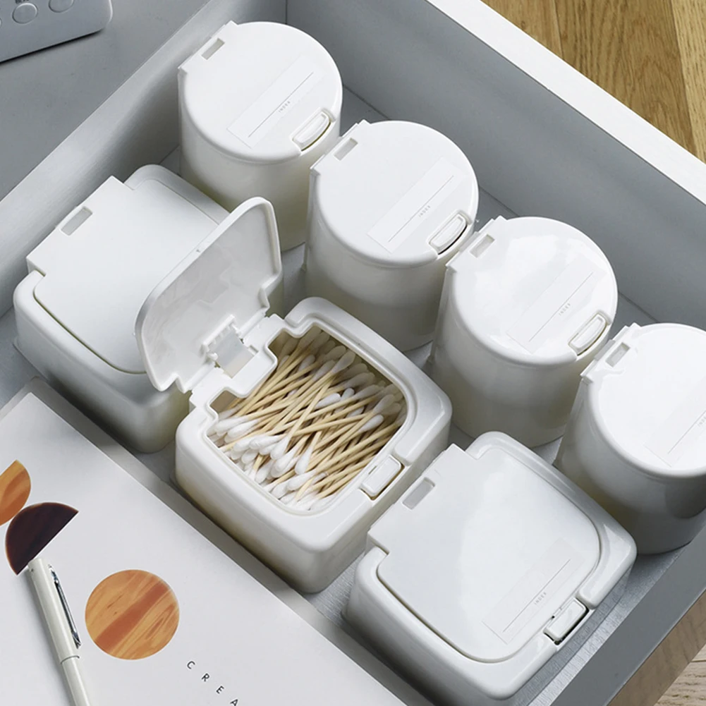 Дорожная коробка для хранения, банка для конфет, подставки для макияжа с крышкой, дозатор для дома и офиса, держатель для Qtip, портативные ювелирные изделия для ванной комнаты, ватных тампонов