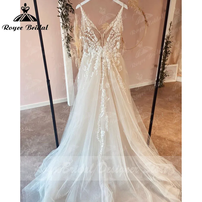 Женское свадебное платье в стиле бохо, ТРАПЕЦИЕВИДНОЕ ПЛАТЬЕ С V-об...