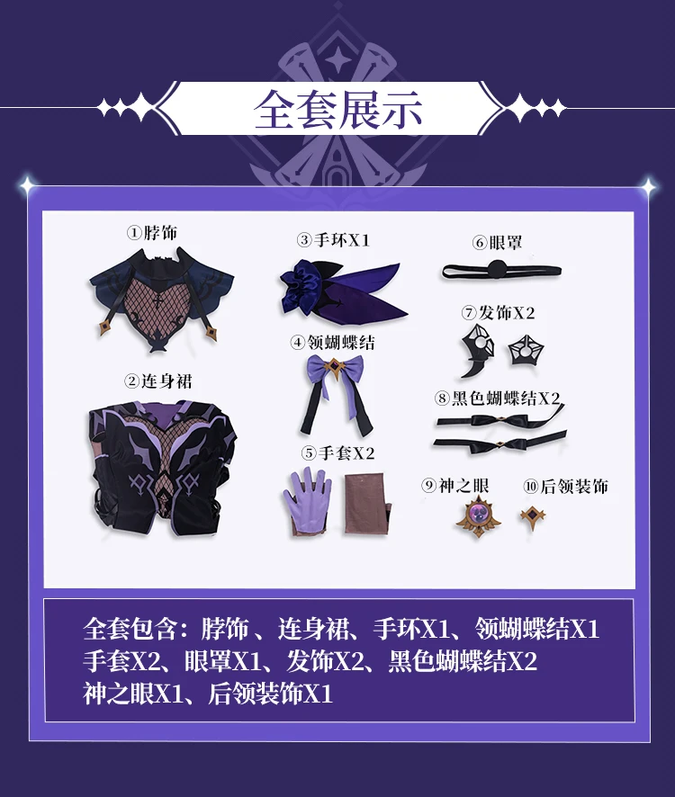 Женский костюм для косплея аниме Genshin Impact Fischl, фиолетовый ...