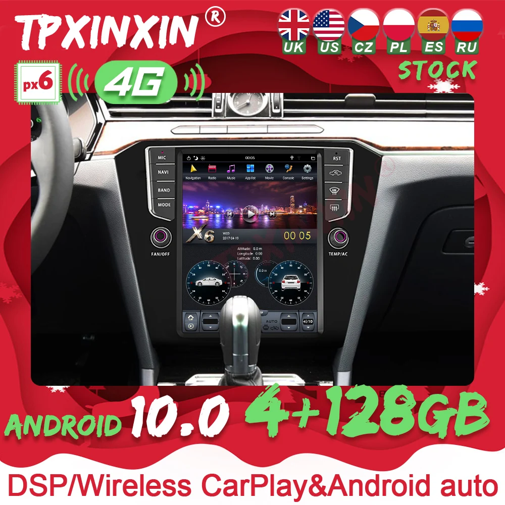 Автомагнитола для Volkswagen VW Passat B8 Magotan 2017 Tesla Style, вертикальная, Android 10, 10,4 дюйма, GPS-навигатор, 4G DAB + Carplay