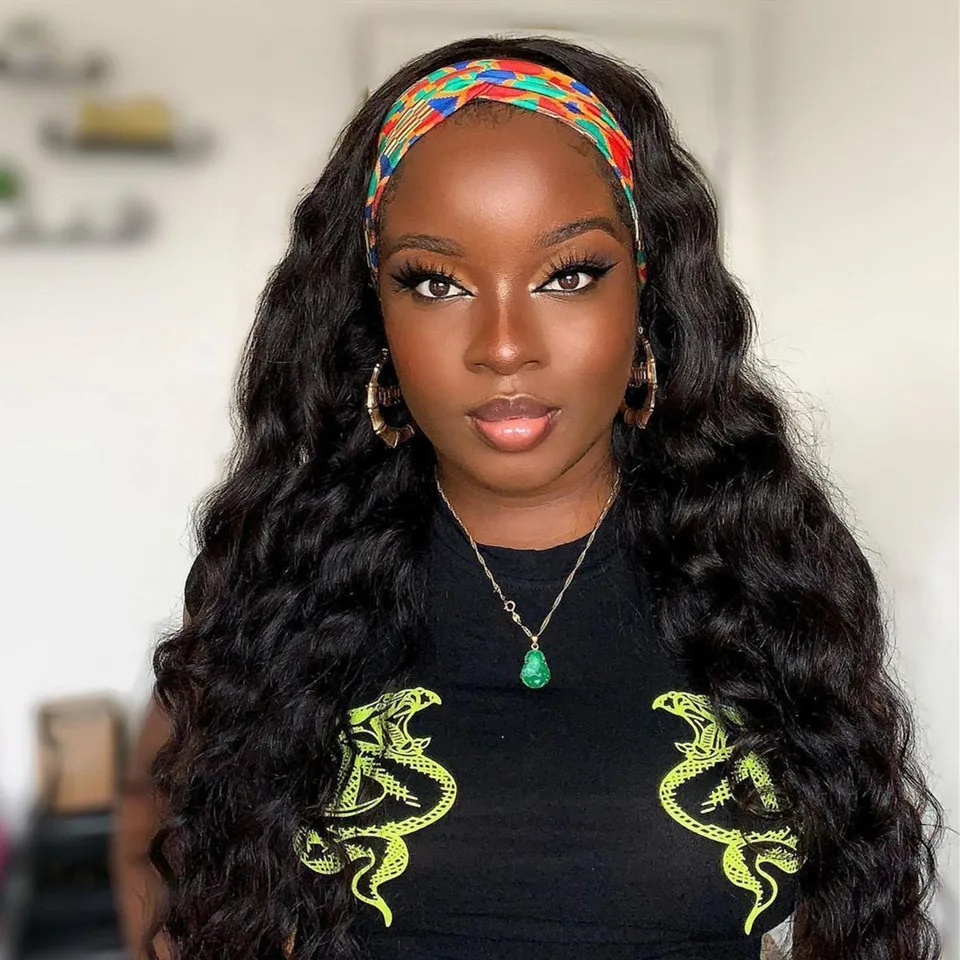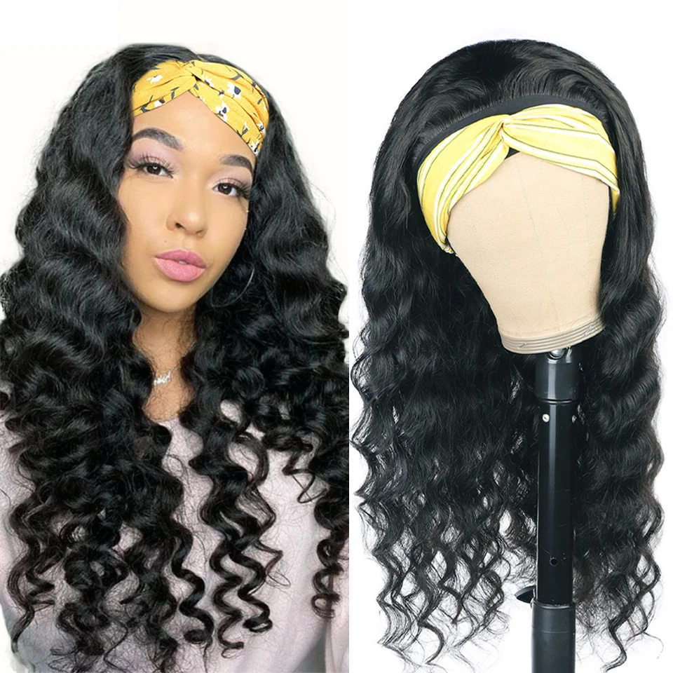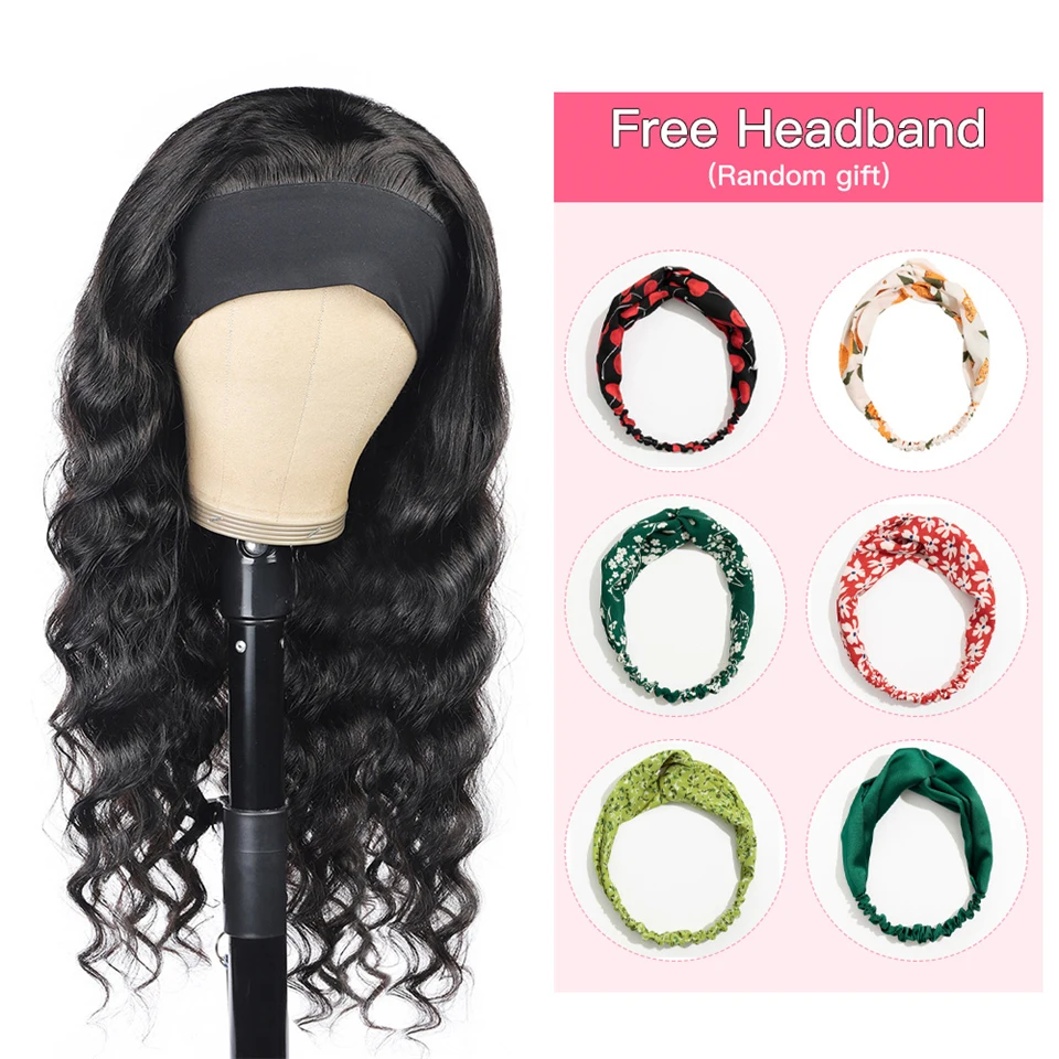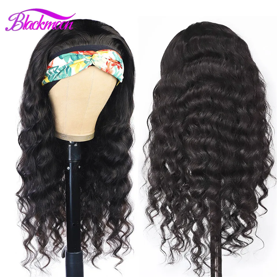 Перуанская свободная глубокая волна головная повязка искусственные Человеческие волосы Remy полностью машинная работа парик для черных женщин натуральный цвет безклеевые парики