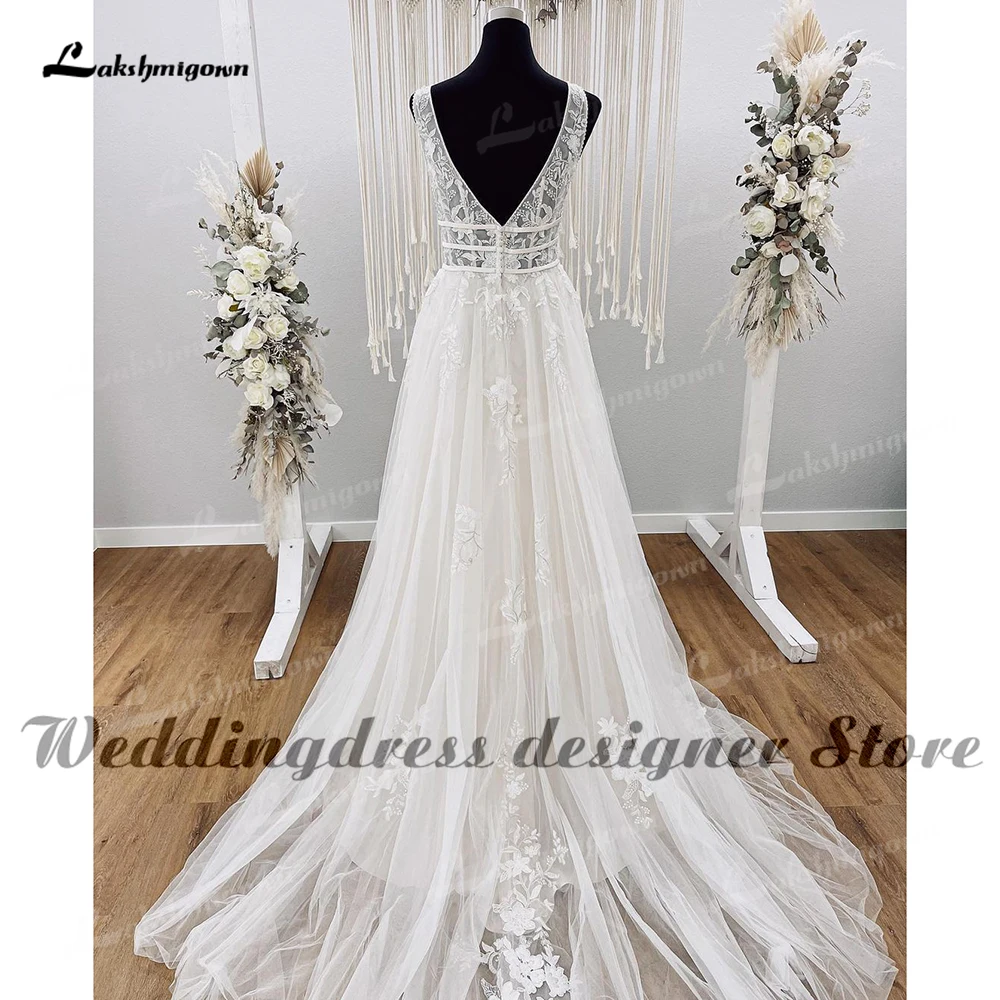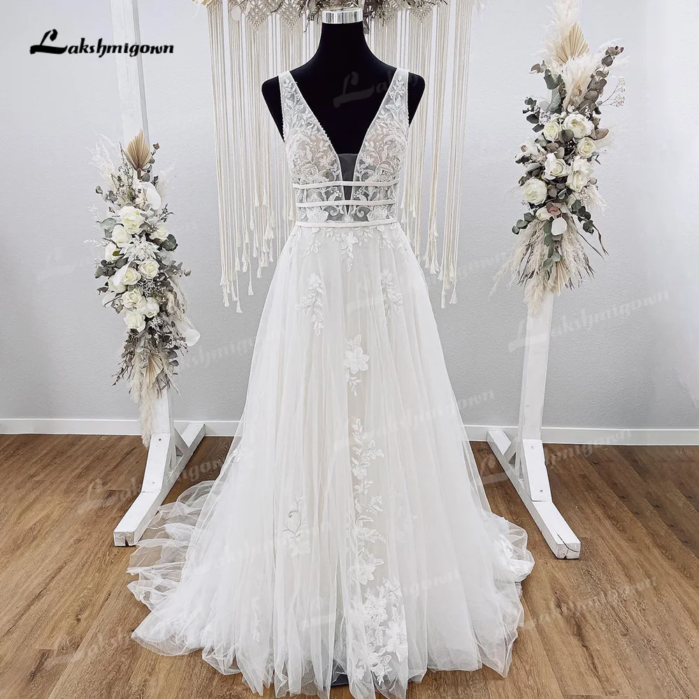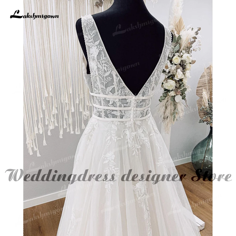 Свадебное платье в богемном стиле с цветочным кружевом 2022, прозрачный кружевной лиф с V-образным вырезом, пляжные свадебные платья принцессы, свадебные платья