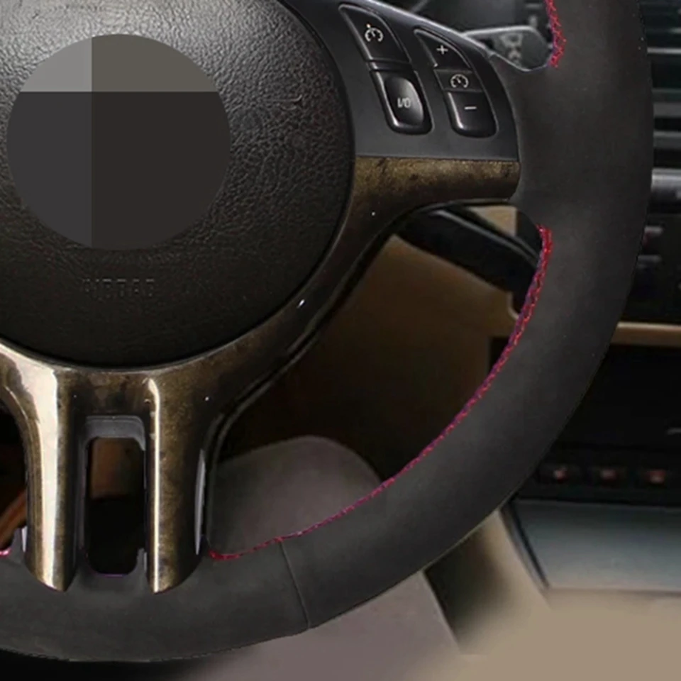 Сшитая вручную черная замша чехол рулевого колеса автомобиля для BM...