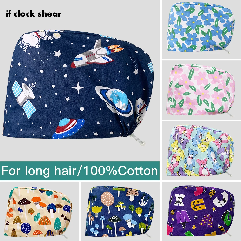 Шапка для медсестры с цветочным узором, регулируемая шапка с разным...