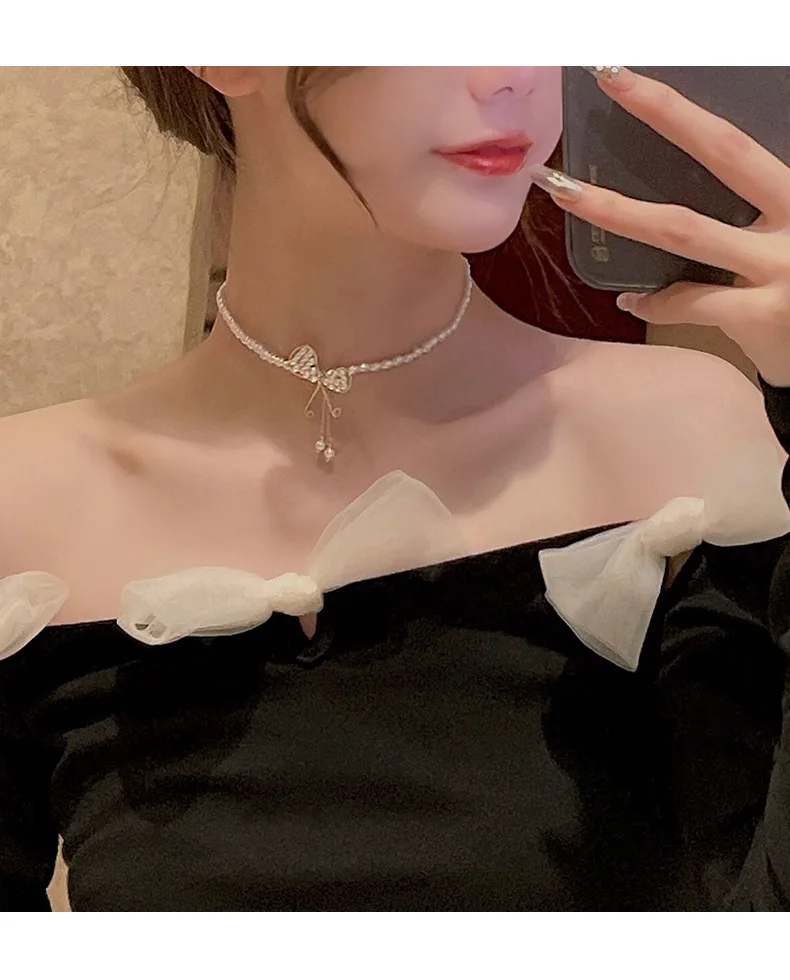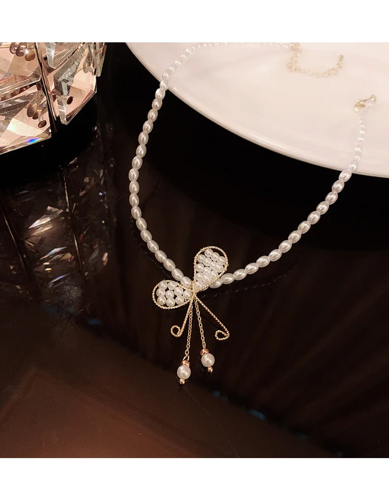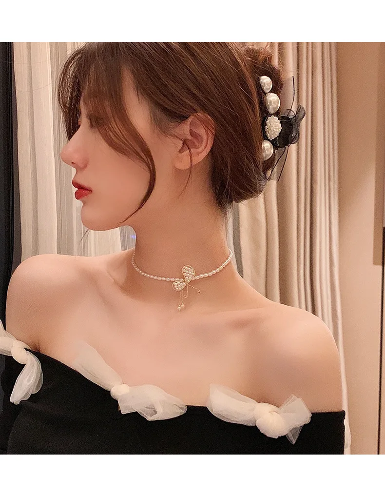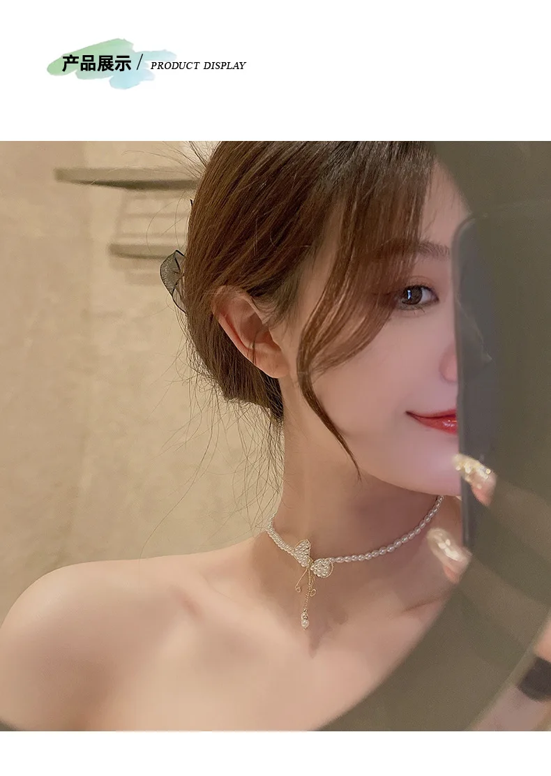 Женская цепочка с жемчугом и бабочкой, Роскошное дизайнерское ожерелье с жемчужной цепочкой до ключиц, новинка 2021