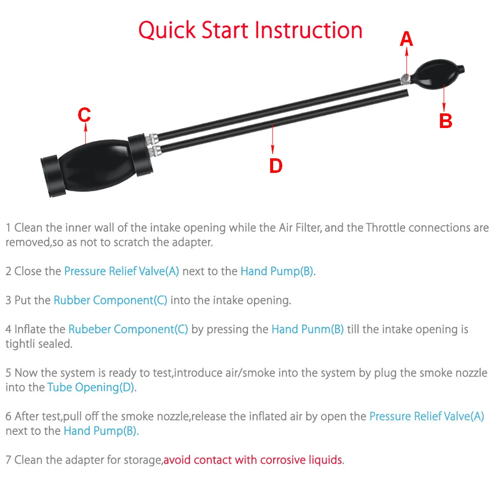 Quick Универсальный Впускной адаптер-это надувной блок от мочевого пузыря с проходом пара под давлением, который позволяет техникам быстро и легко тестировать все впускные или выхлопные системы.
