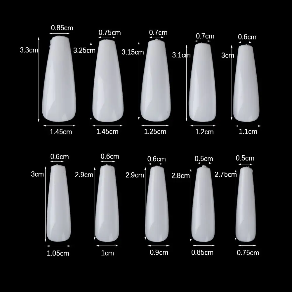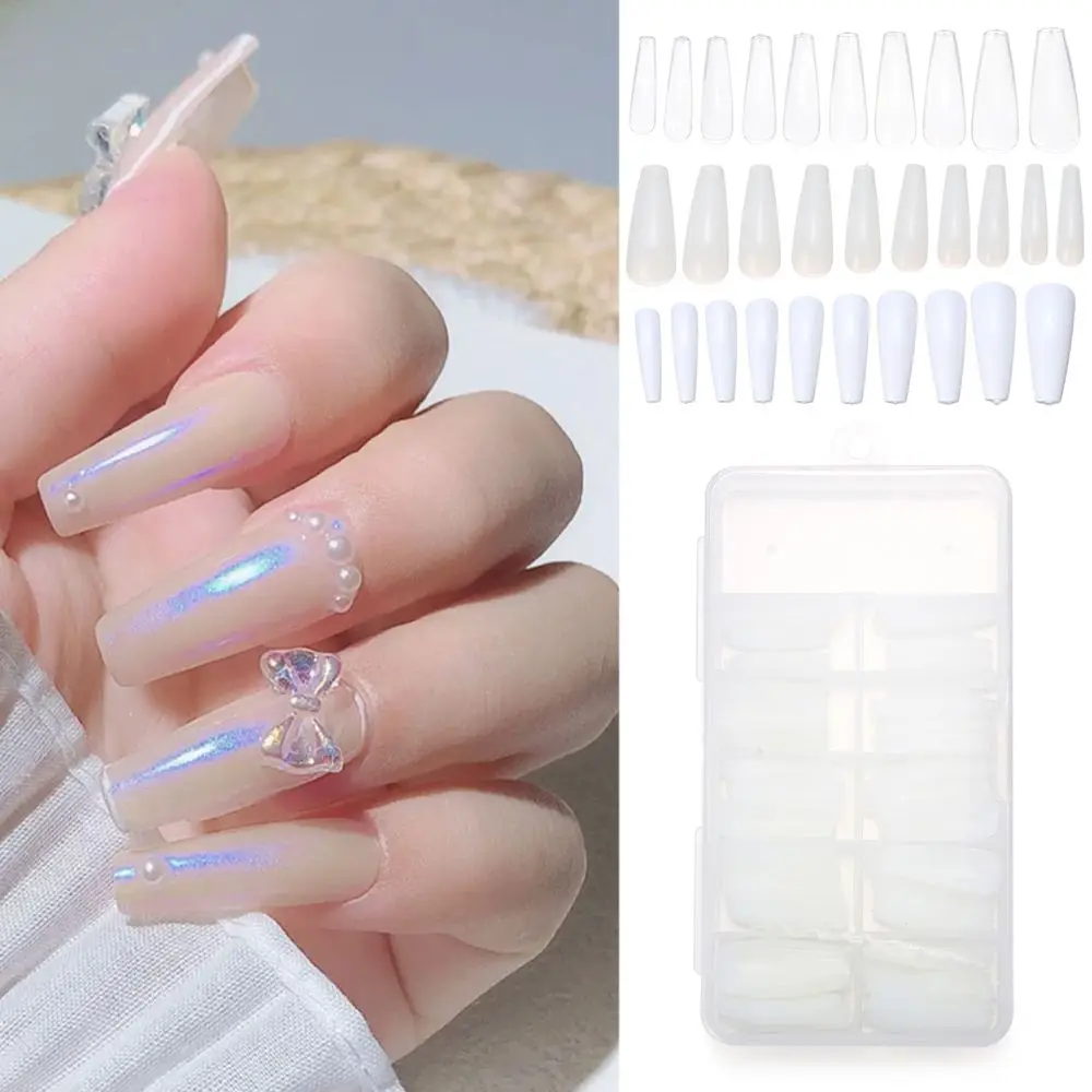 100 шт.коркор. полное покрытие, искусственные ногти, накладные ногти, длинные балерины, прозрачныенатуральныебелые, накладные ногти, художественные накладные ногти, инструмент для маникюра