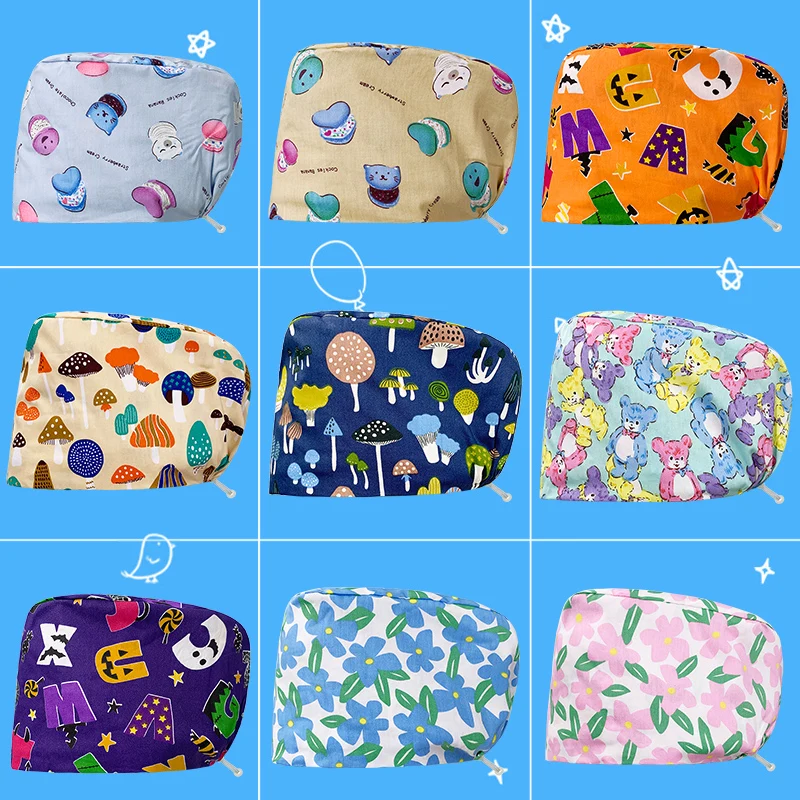 Хлопковая Регулируемая шапка для кормления с мультяшным принтом для длинных волос, Женская ветеринарная шапка-скраб для домашних животных, шапка для стоматолога, шапка-скраб