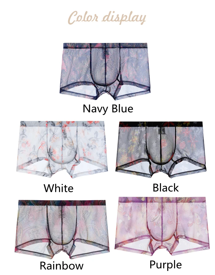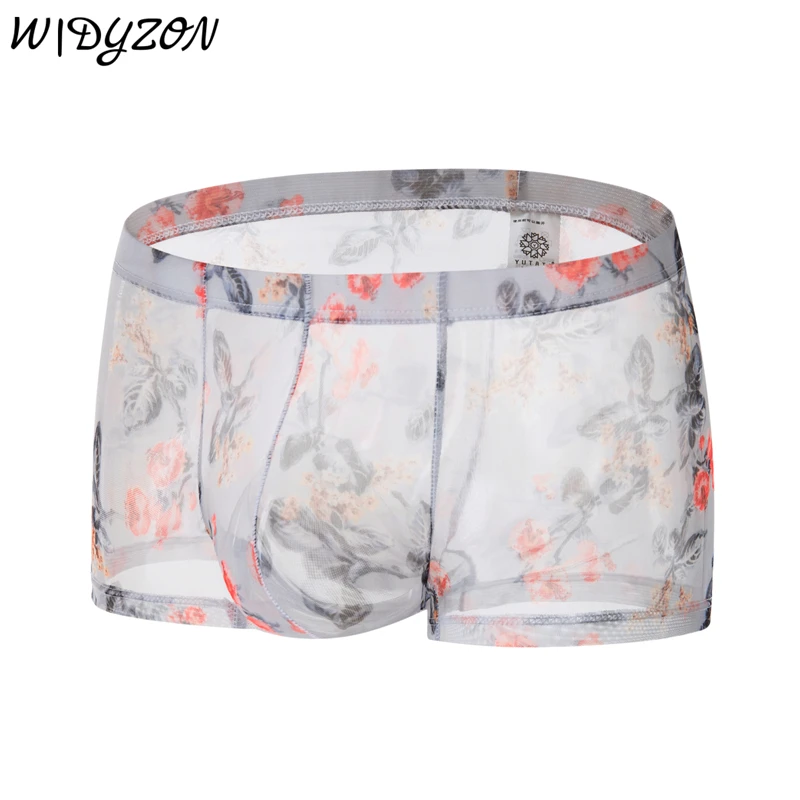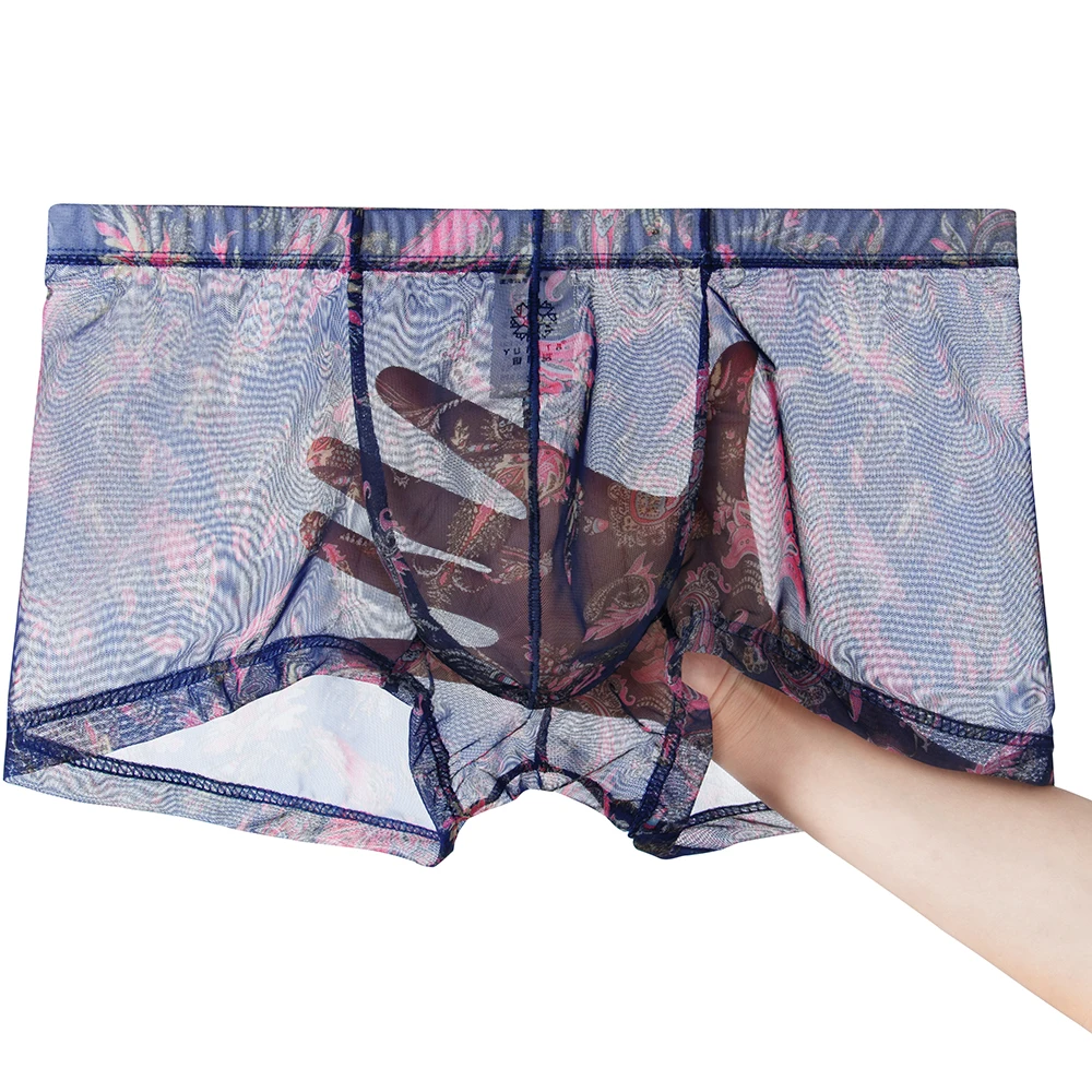 Трусы-боксеры мужские, сетчатые, прозрачные, с цветочным принтом, п...