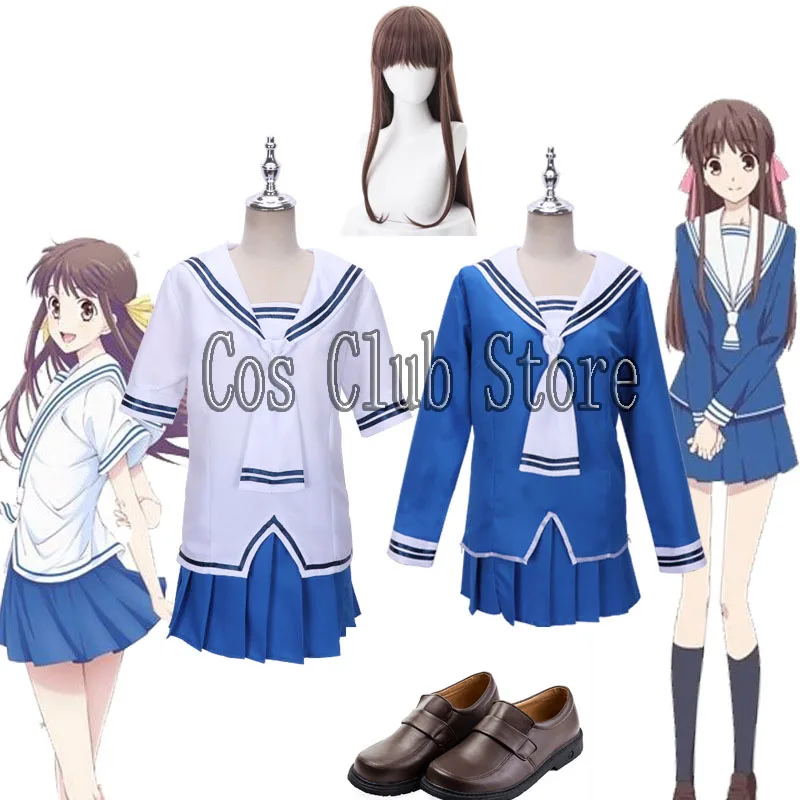 Костюм для косплея из аниме корзина с фруктами, униформа для косплея Tohru Honda, школьная Униформа JK для девочек, обувь с париком, Женский матросский костюм, верхняя юбка