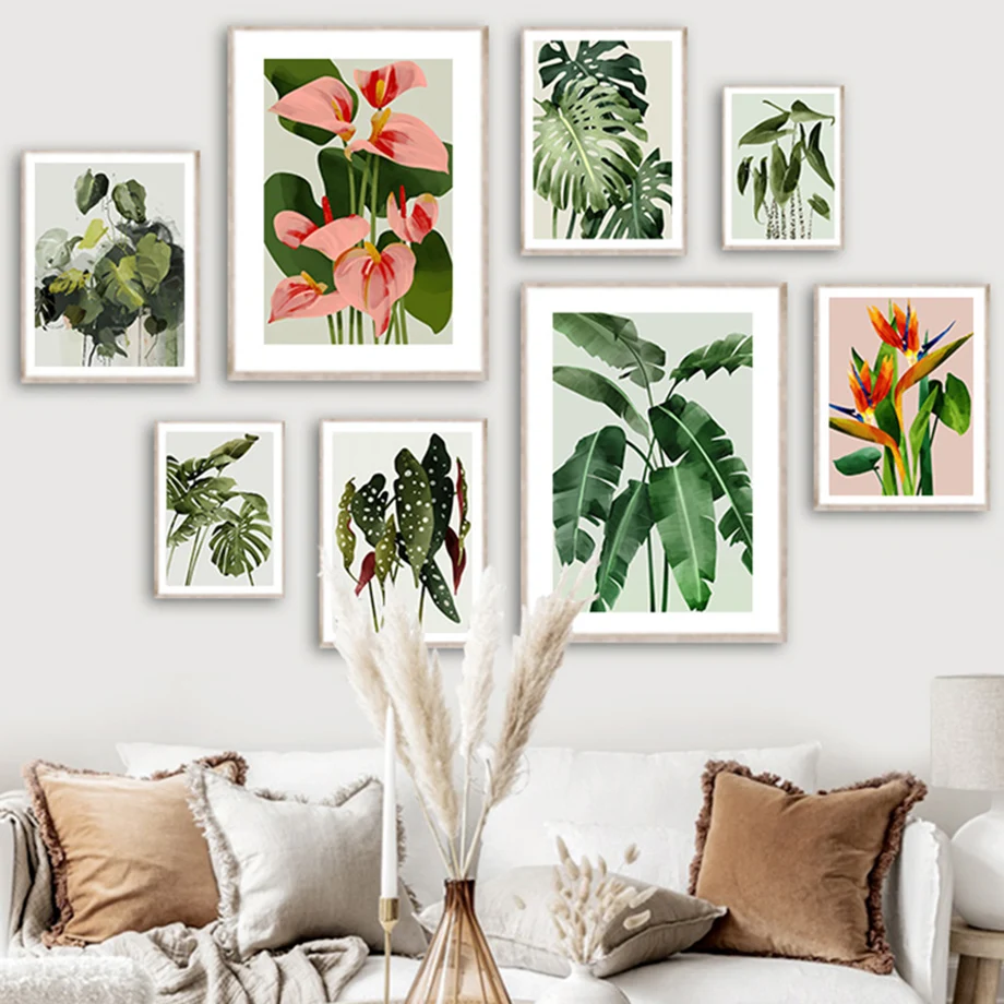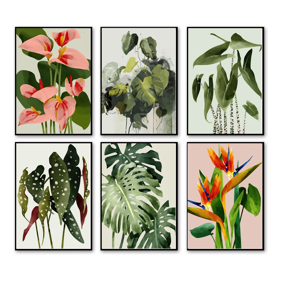 Boho растения монстера кактус пальмовый лист абстрактная Скандинавс...