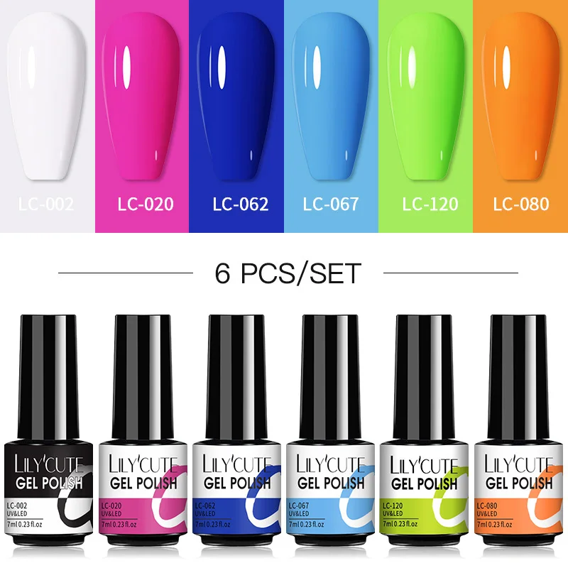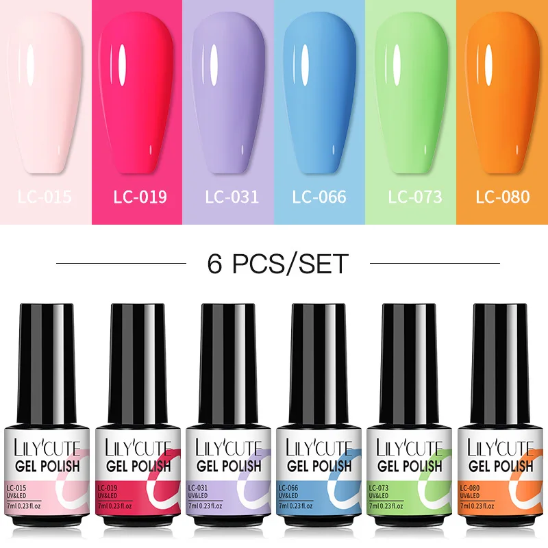 Посылка: 6 бутылок 7 мл Lilycute 136 цветов отмачиваемый Гель-лак для ногтей