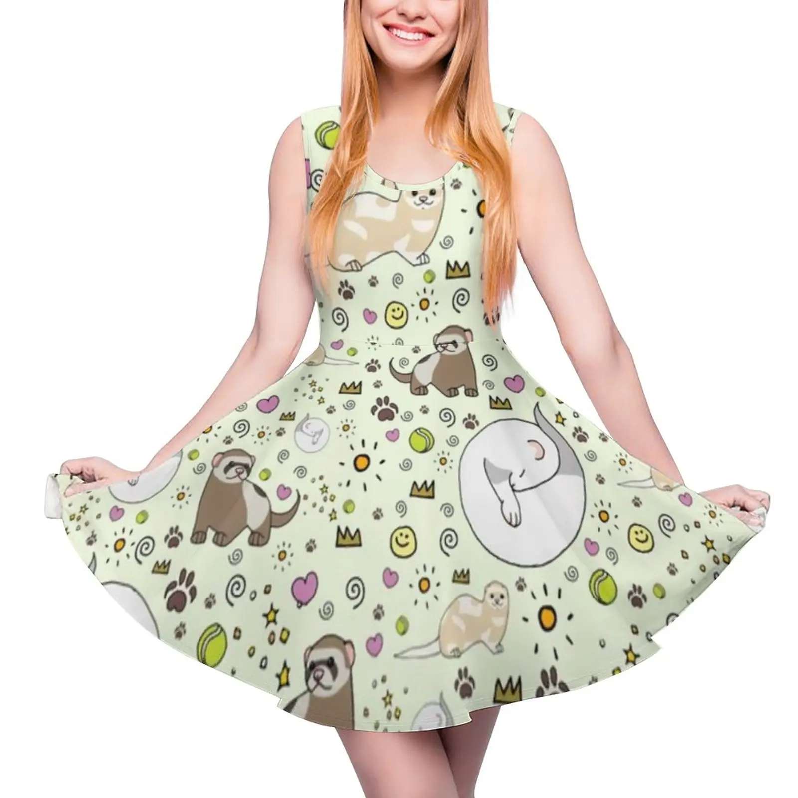 Платье с изображением хорьков, новые летние платья с изображением животных, элегантное цельное платье