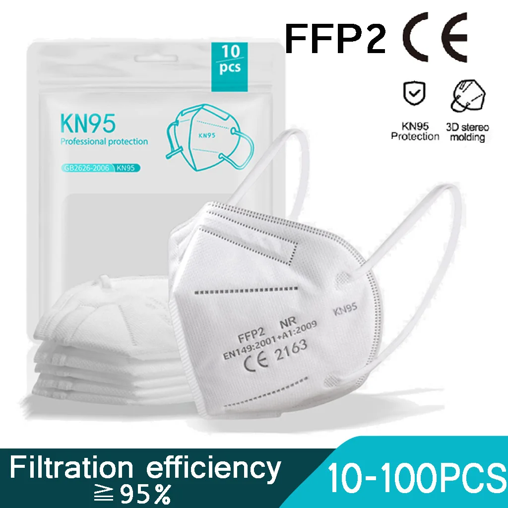 10-100 шт. ffp2mask Black KN95 mascarillas negra взрослая 5-слойная fpp2 одобренная kn95 CE респираторная маска для лица ffp2 многоразовая