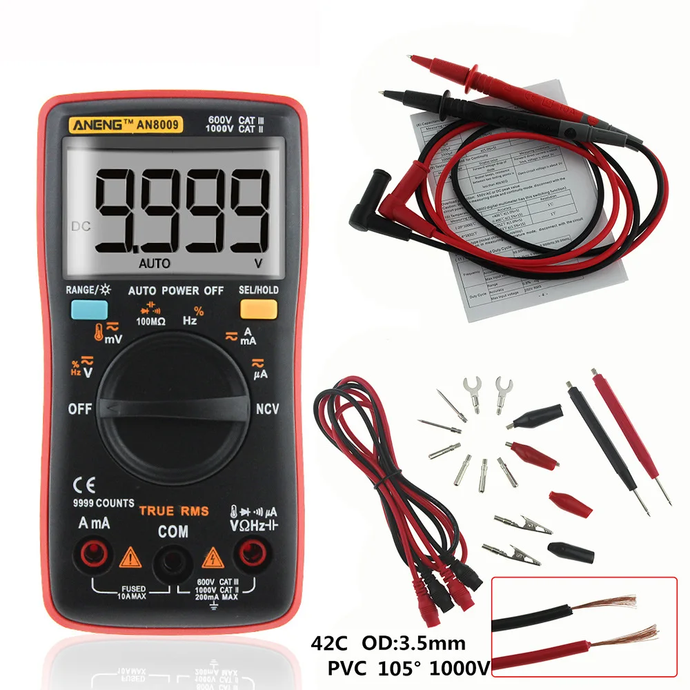 Цифровой мультиметр ANENG AN8009, портативный электронный измеритель напряжения постоянного и переменного тока с автоматическим выбором диапазона