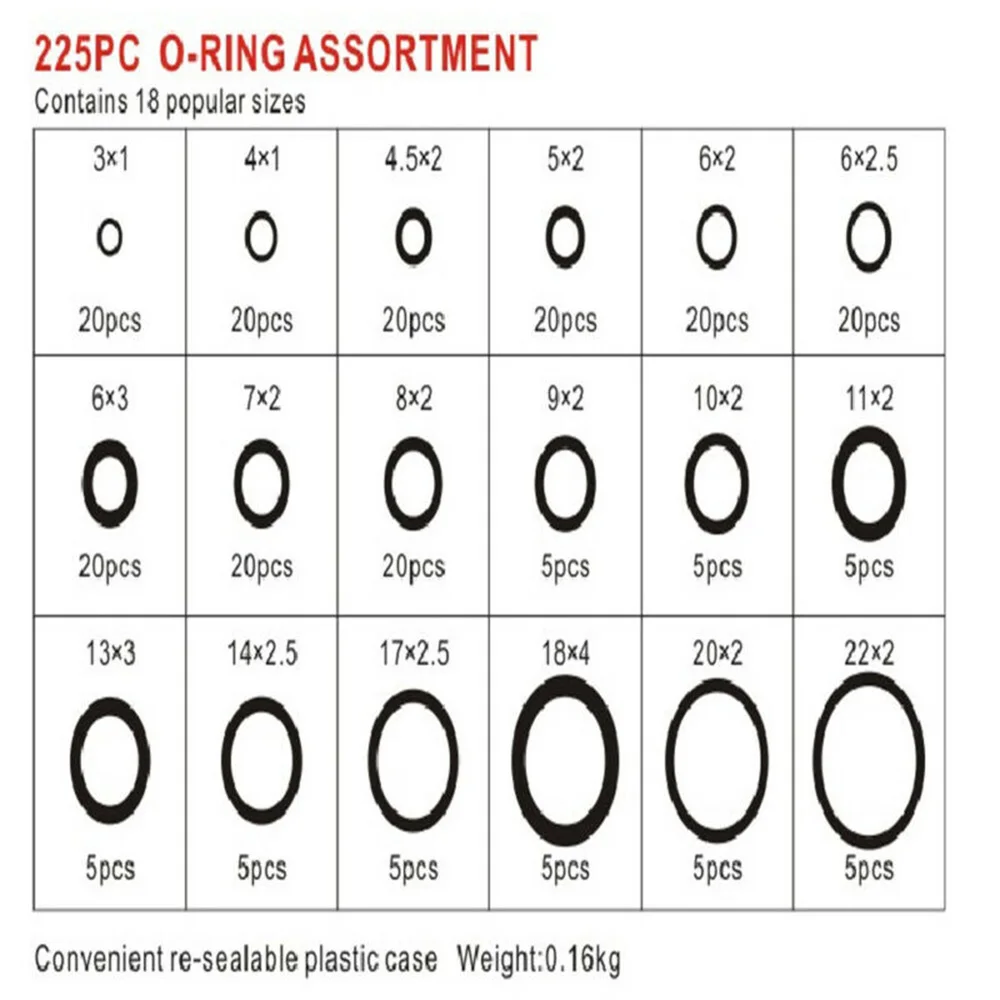 225 шт. резиновое уплотнительное кольцо, набор ассортимента, кислотный бензиновый маслостойкий уплотнитель, сантехника, Набор уплотнений для гаража