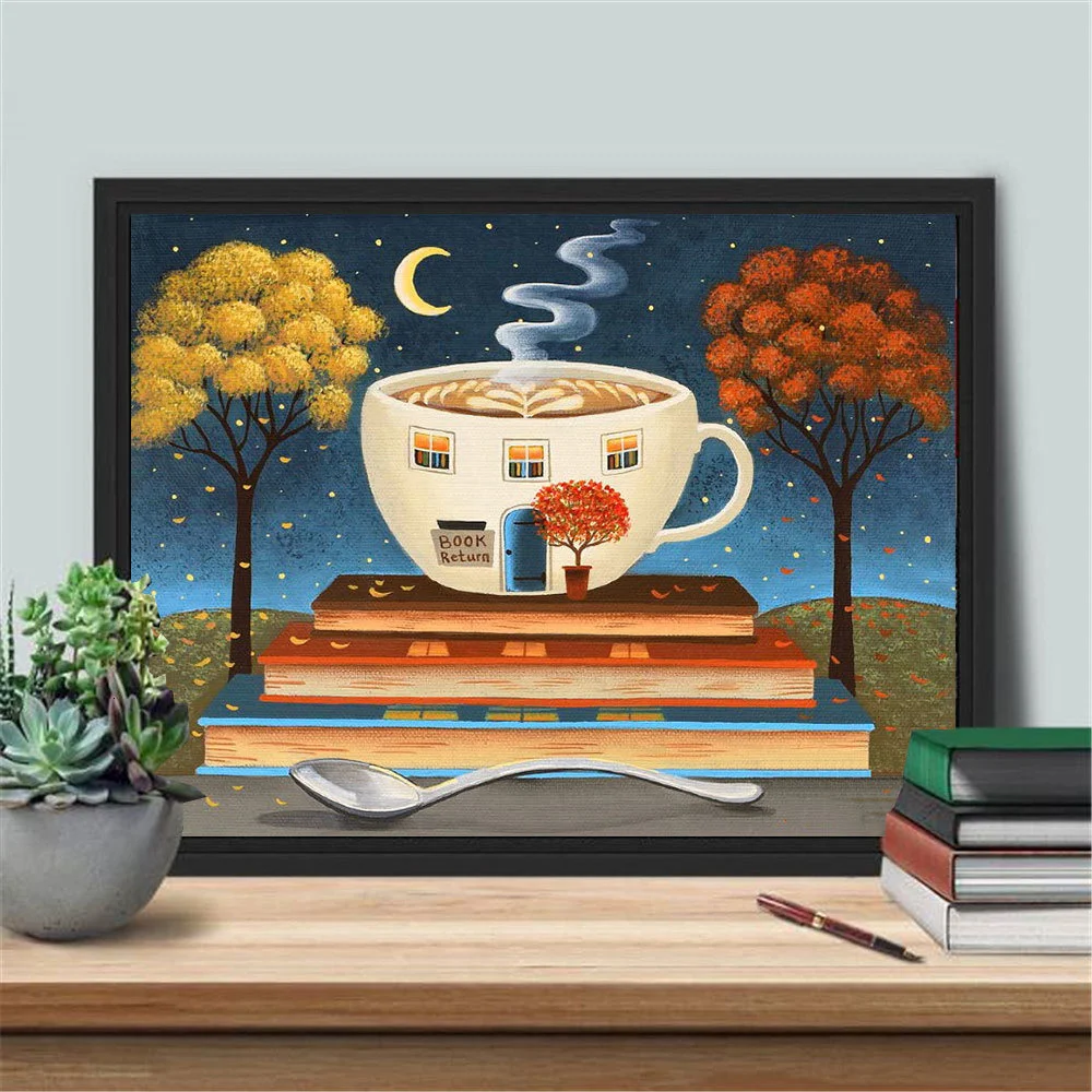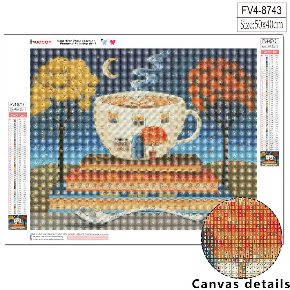 Алмазная 5D картина HUACAN, кофейная чашка, книга, мозаика из страз, деревья, пейзаж, полный набор для вышивки, домашний декор, подарок