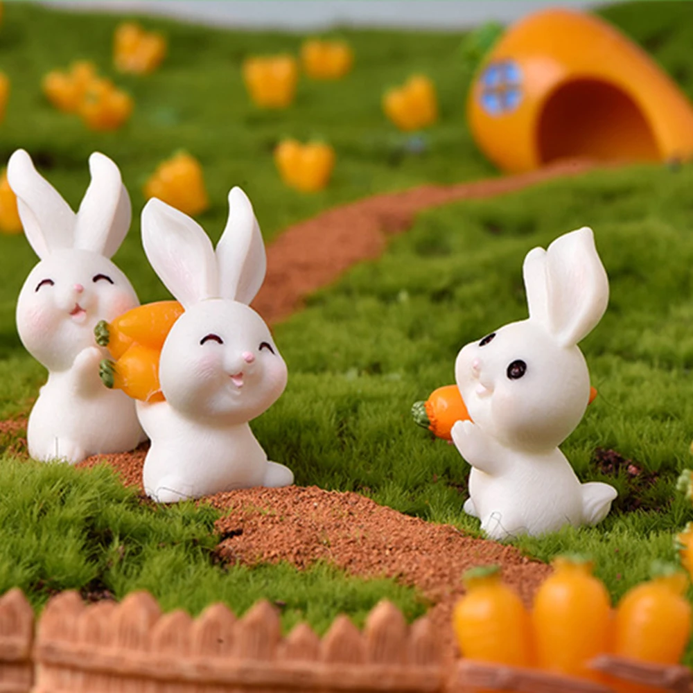 Мини-Фигурка кролика 2022, миниатюрный милый кролик, настольный сделай сам, украшение для дома, микро-ландшафтный орнамент, пасхальный садовый декор