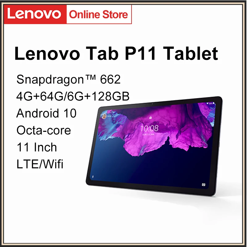 Lenovo Tab P11 Tabelt смартфон с 6-дюймовым дисплеем, восьмиядерным процессором Snapdragon, ОЗУ 4 Гб, ПЗУ 6 ГБ, 64 ГБ или 128 ГБ, Android 10