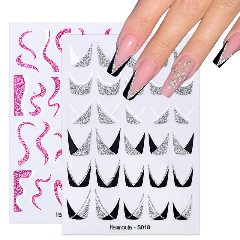 Серебристые черные геометрические текстурированные линии Harunouta, полосатые 3D зеркальные листья, Самоклеящиеся Переводные слайдеры, бумага