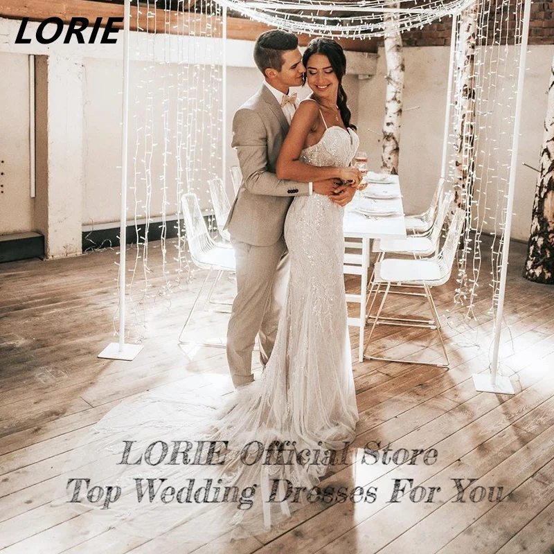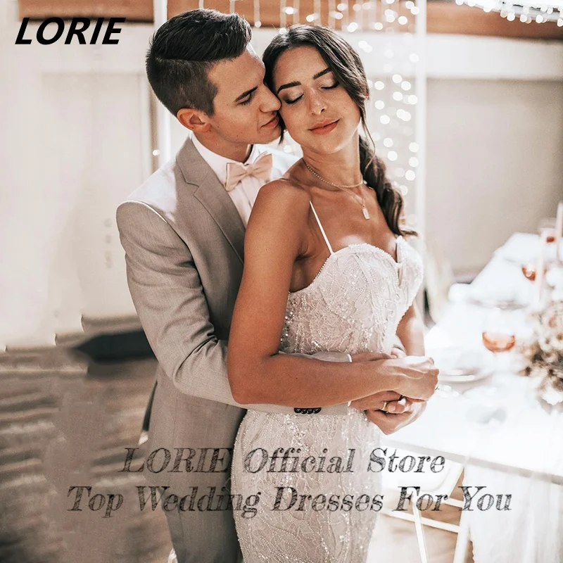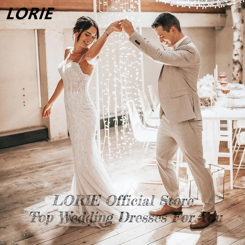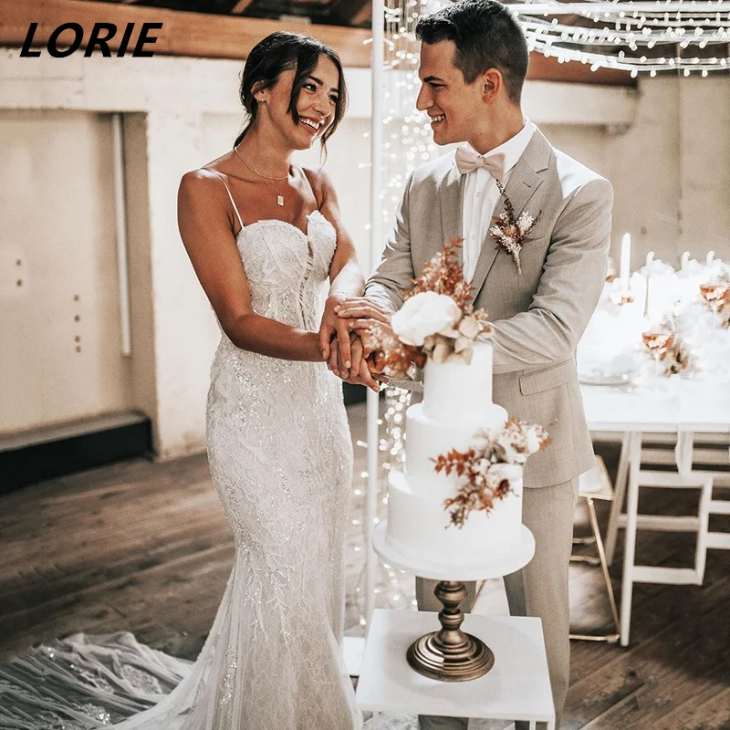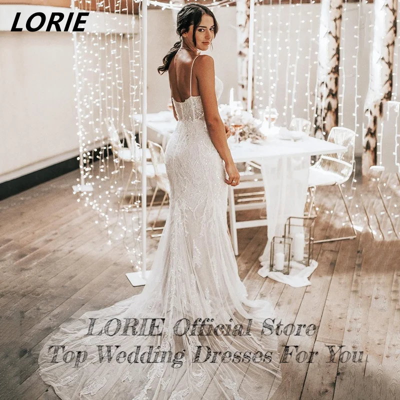 LORIE элегантные блестящие кружевные Прямые свадебные платья на бретелях с открытой спиной облегающее женское винтажное свадебное платье
