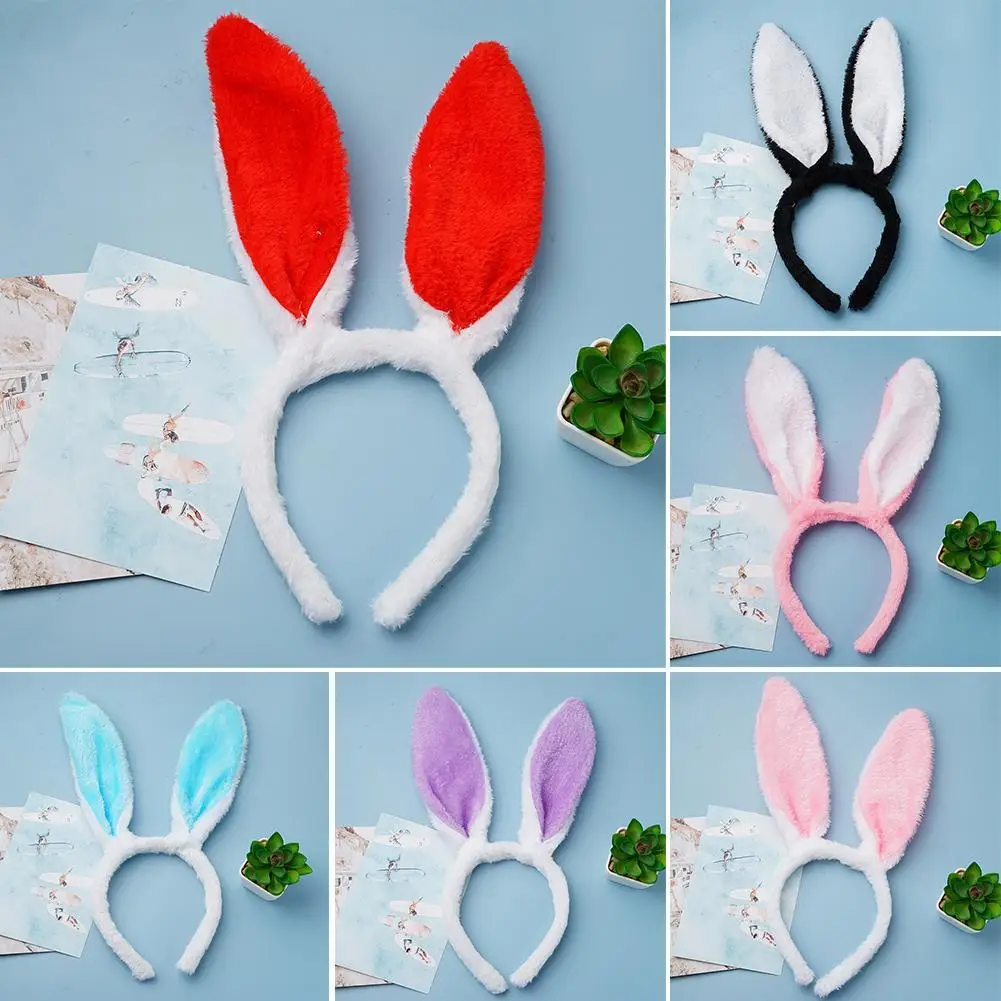 Повязка на голову с милыми кроличьими ушками, плюшевая повязка на голову с ушками, аксессуары для волос для девочек в стиле аниме
