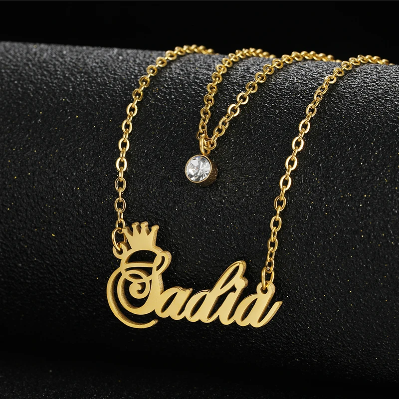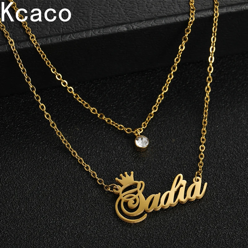 Индивидуальное модное ожерелье из нержавеющей стали с именем по месяцу рождения, персонализированное Золотое Двухслойное циркониевое ожерелье с подвеской, подарок, бижутерия