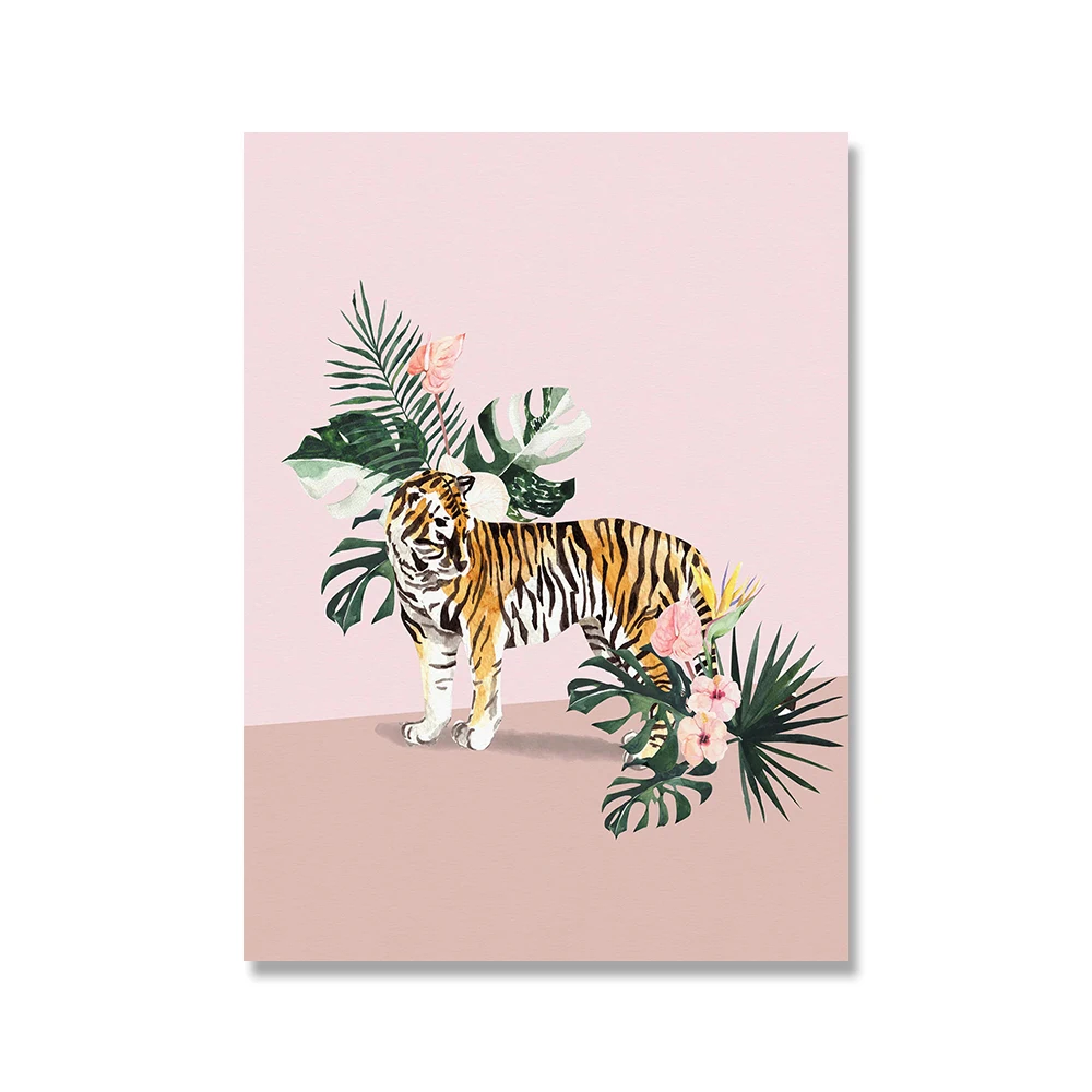 Розовые Джунгли тигр Гепард Леопард тропические растительные настенные картины на холсте скандинавские постеры принты картины декор для гостиной icon star icon star icon star icon star icon star