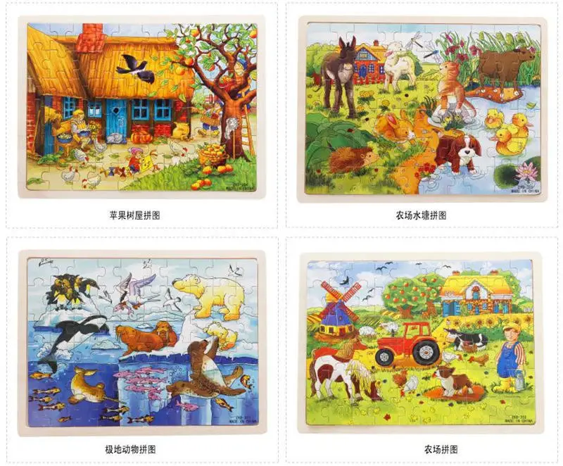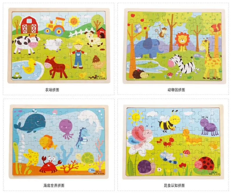 Название продукта: 60 штук, Детские Обучающие деревянные игрушки, мультяшная ферма, животные, головоломка, Детская развивающая игрушка для детей, деревянный пазл