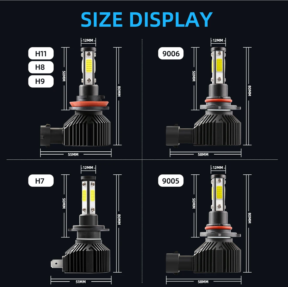 4 боковых светодиодный фары H7 H8 H9 H11 9005 HB3 9006 HB4 Авто турбо фары 6000 К Вождение Противотуманные фары 360 градусов автомобильные лампы 12 В Белый