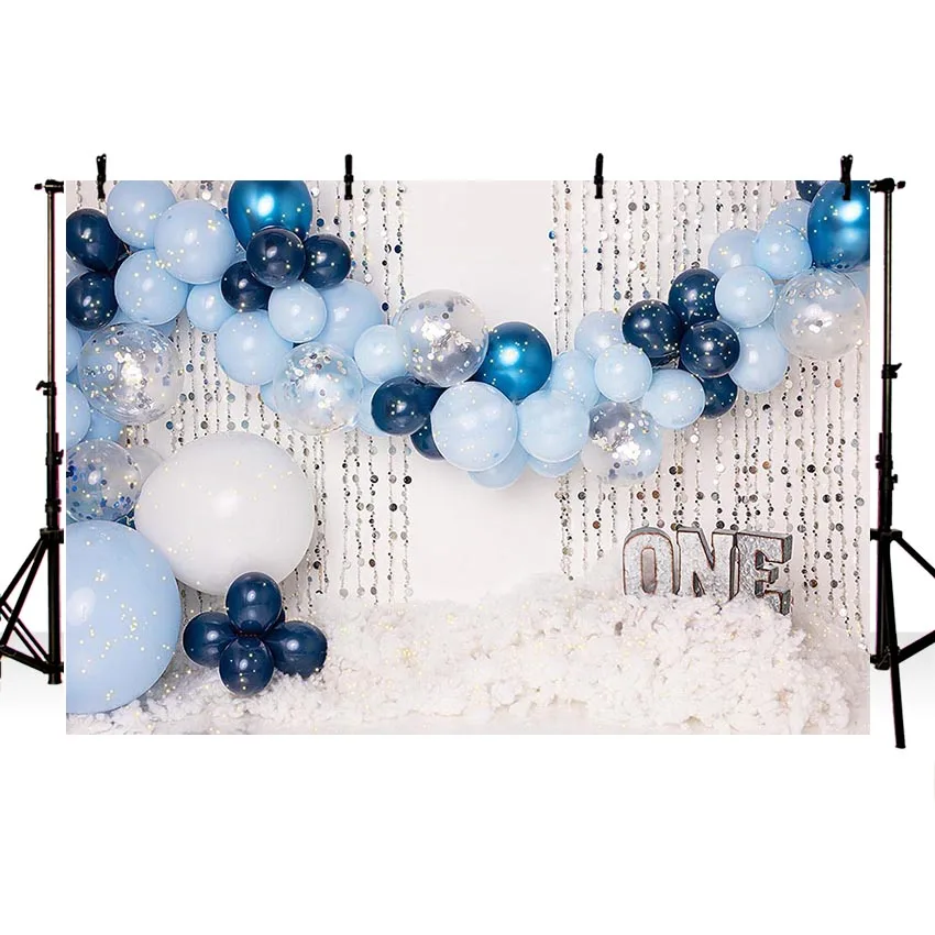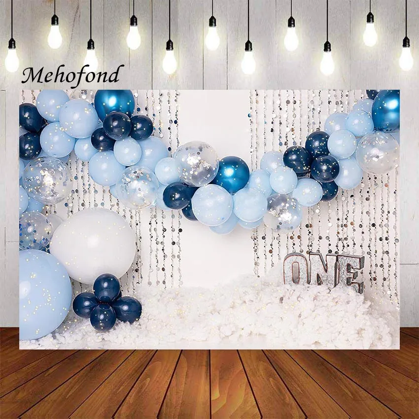 Фон для фотосъемки Mehofond синие воздушные шары Белые облака малыш мальчик 1-й день рождения торт разбивать Декор фон фотостудия