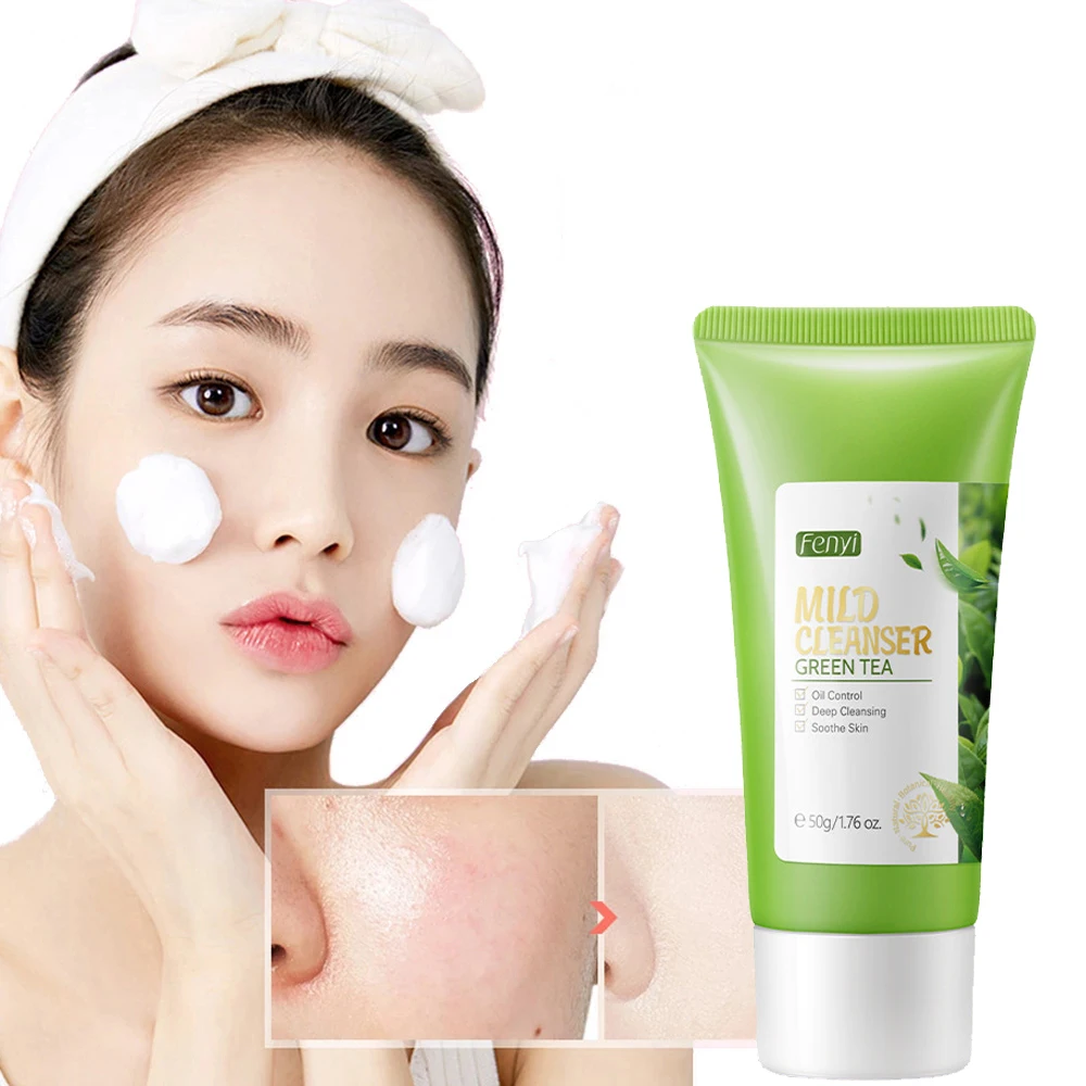 Очищающее средство для лица с зеленым чаем, сдерживает кожу, успокаивает поры, осветляет, отбеливает, уход за лицом