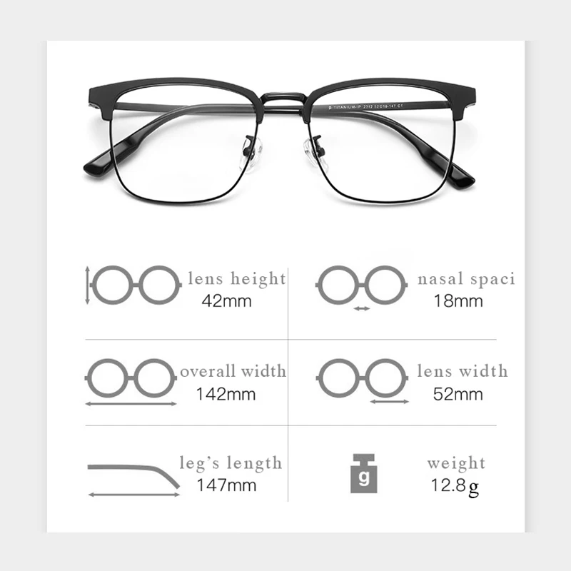 Оправа для очков Мужская из чистого титана, рецептурные Полуободков...