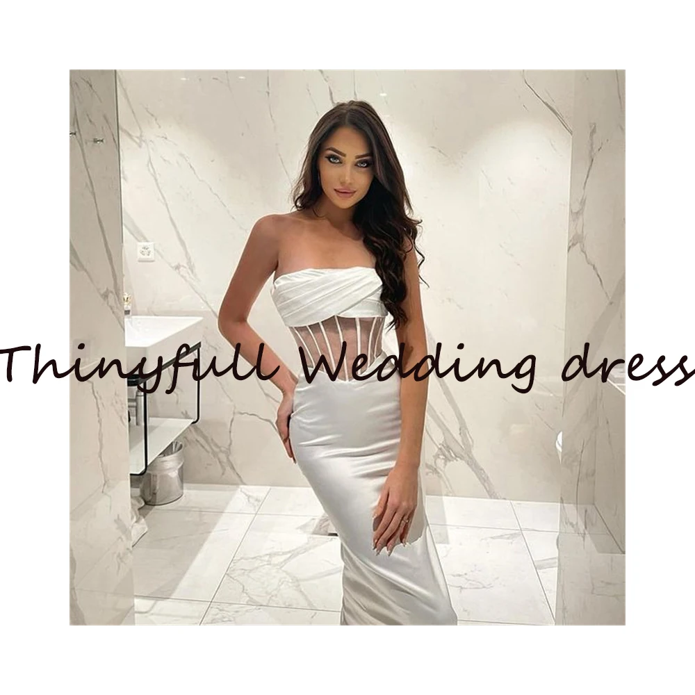 Thinyfull, Простые Свадебные платья без рукавов, без бретелек, с разрезом сзади, Пляжное платье, принцесса, свадебные платья, платье невесты, Новинка