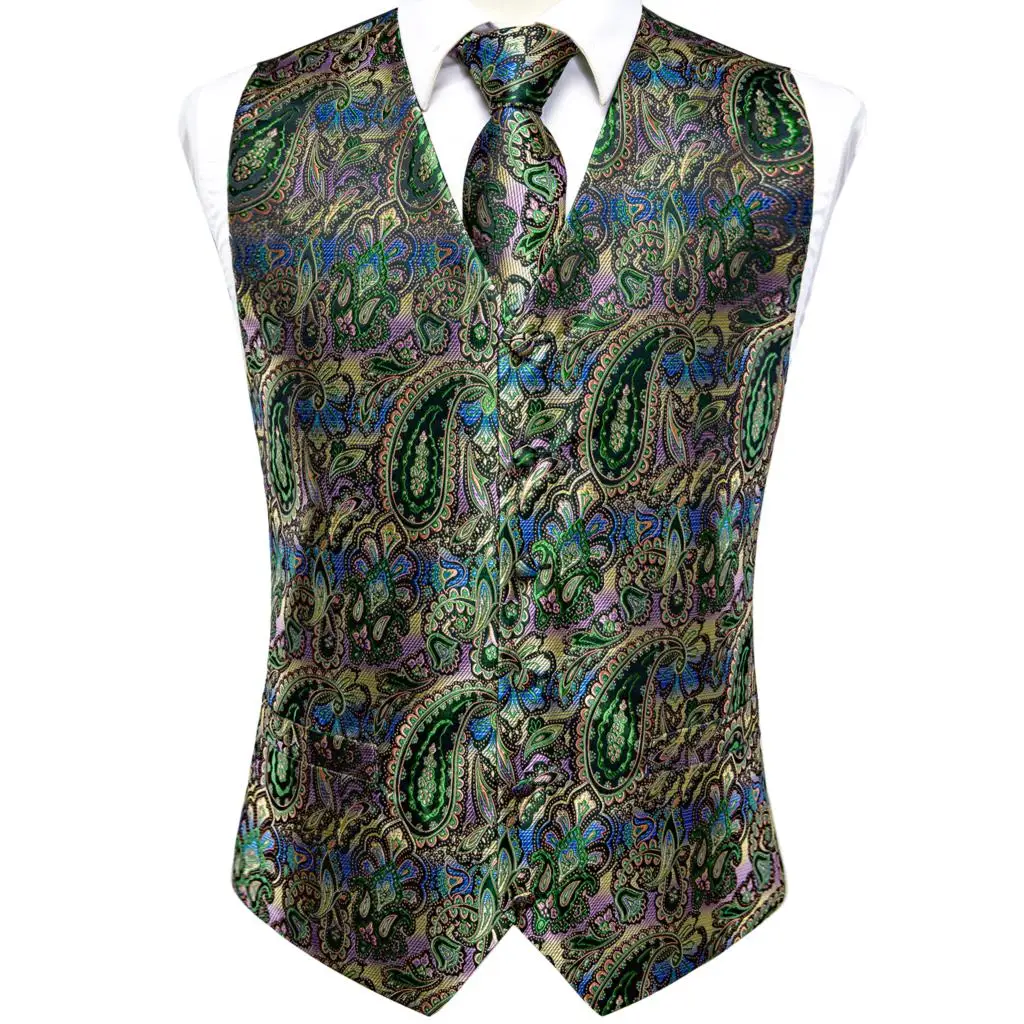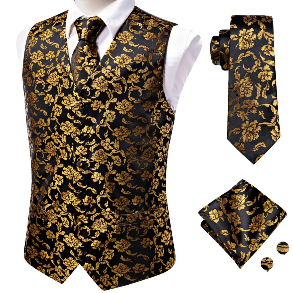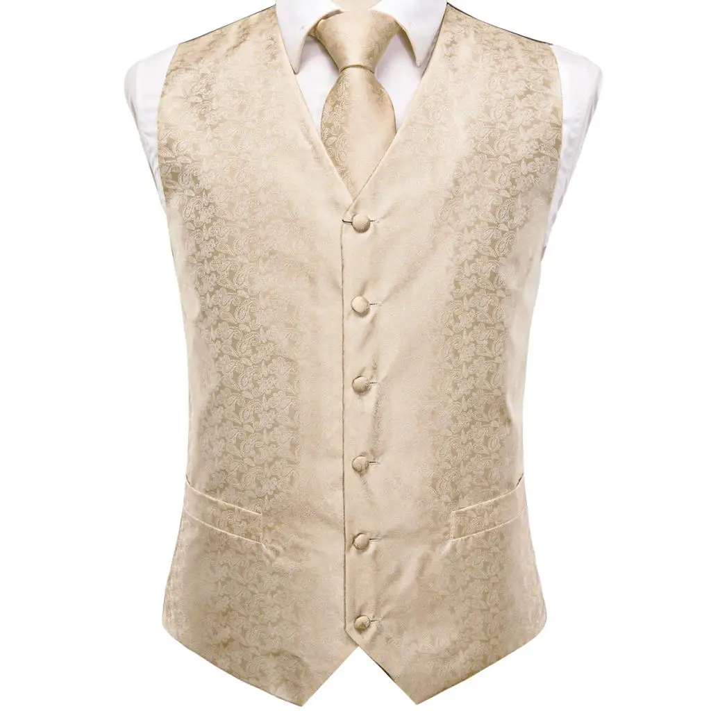 Hi-Tie, высокое качество, шелковые мужские жилеты, цвета шампанского, Пейсли, жилет, шейный галстук, Hanky, запонки, брошь, набор для мужчин, костюм для свадьбы, офиса