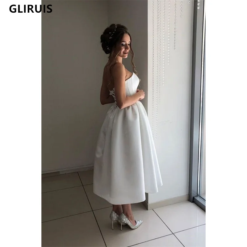 Женское атласное свадебное платье It's yiiya, белое простое короткое платье-трапеция до щиколотки на шнуровке с разрезом на лето 2022
