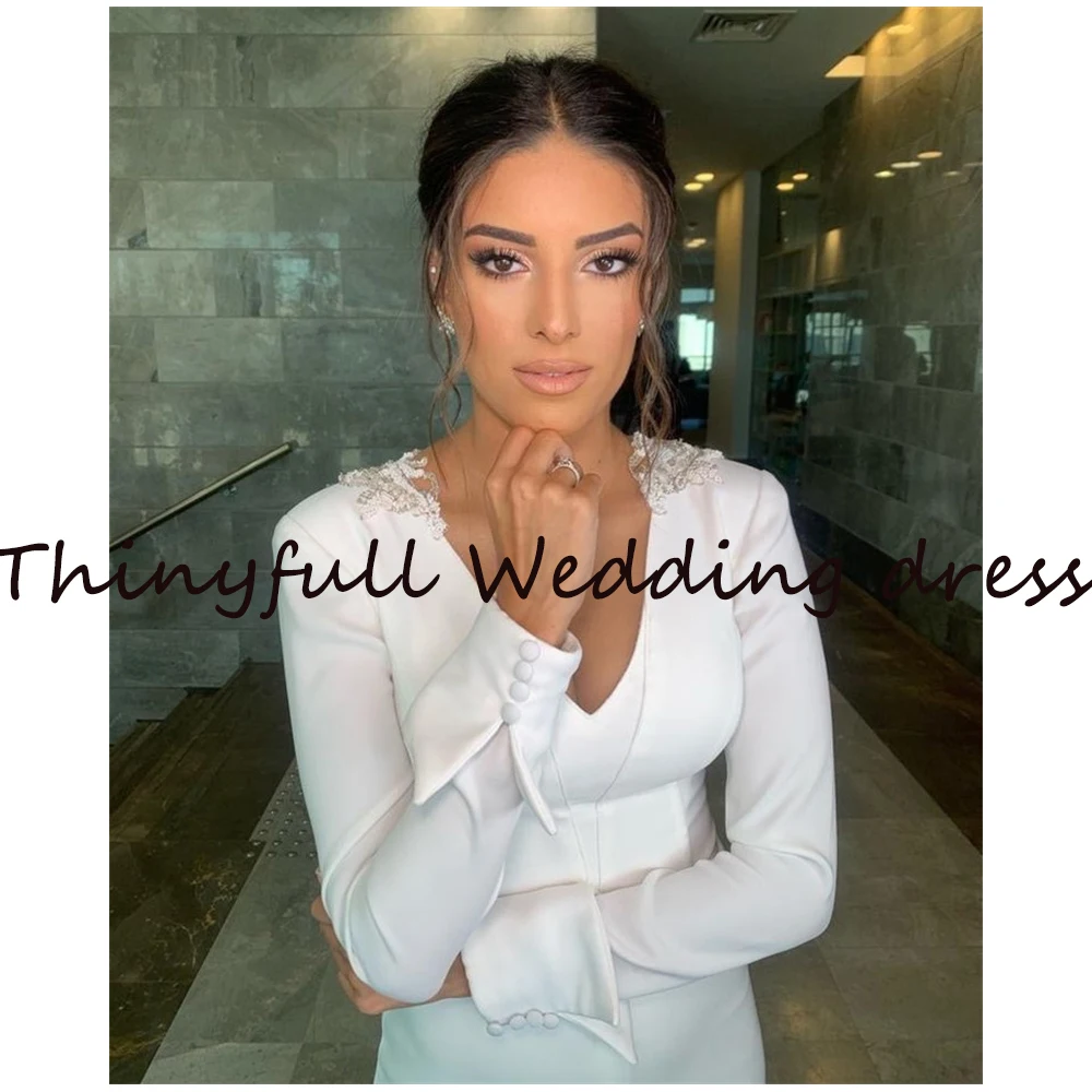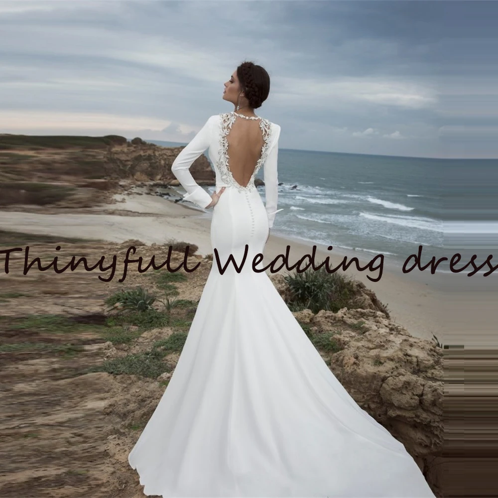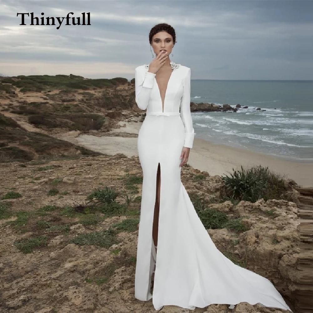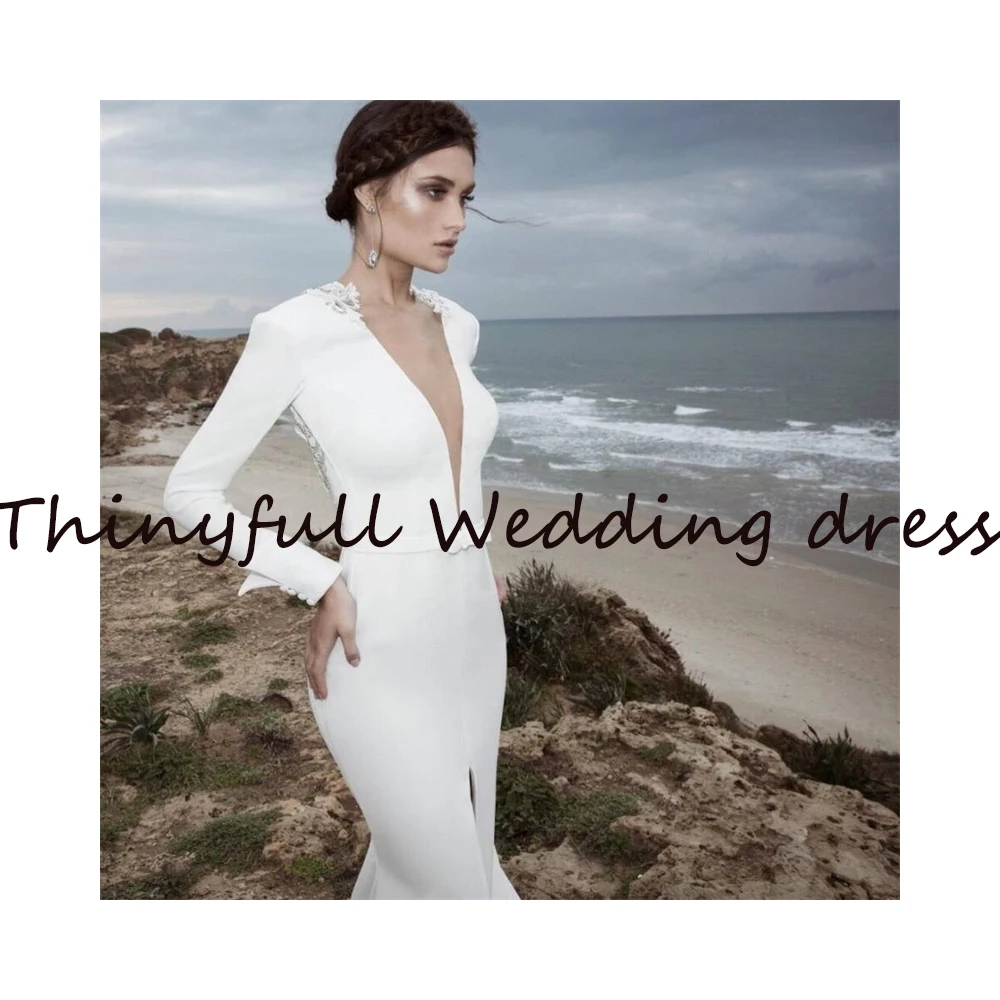 Простое длинное мягкое свадебное платье-Русалка с V-образным вырезом и длинными рукавами, с V-образным вырезом и открытой спиной, официальное платье принцессы, свадебные платья невесты, наряды
